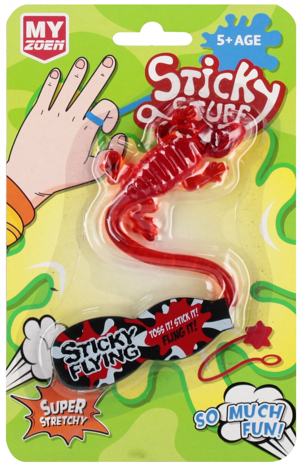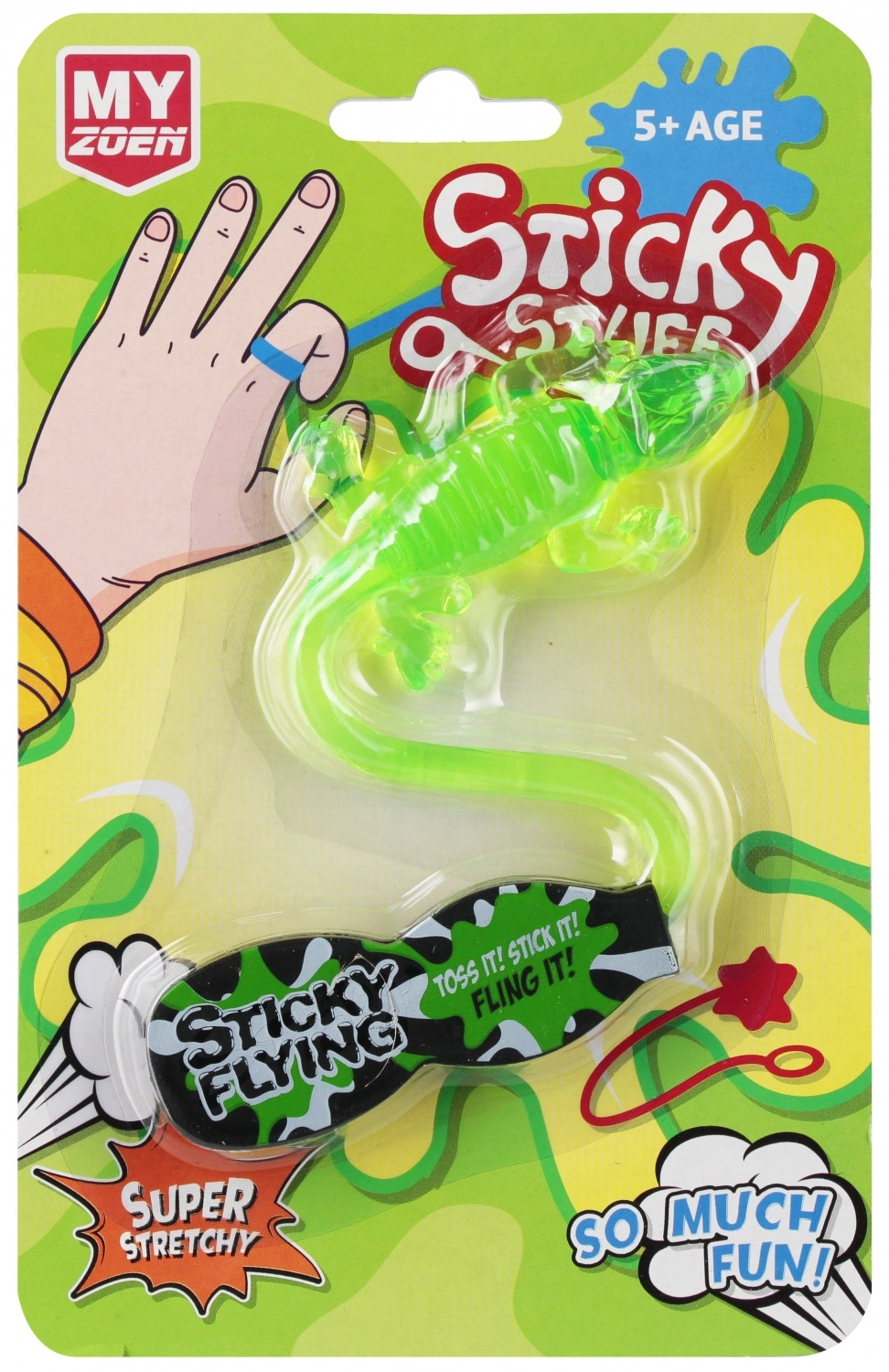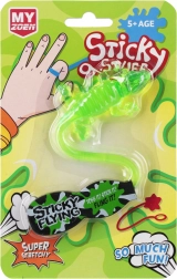 Ontdek de plakkende hagedis waarmee kinderen urenlang plezier beleven. Trek hem uit, gooi hem op een glad oppervlak en kijk hoe hij blijft zitten en langzaam naar beneden glijdt. Ideaal klein speeltje voor thuis en onderweg.