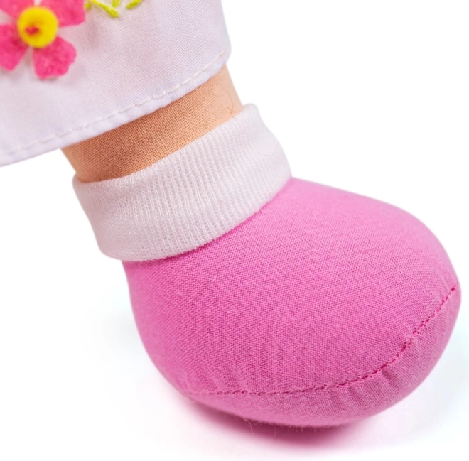 Eva is een vrolijke en kleurrijke stoffen pop, een ideale metgezel voor uw kind. Ze is gekleed in kwaliteitskleding die makkelijk aan en uit te kleden is.