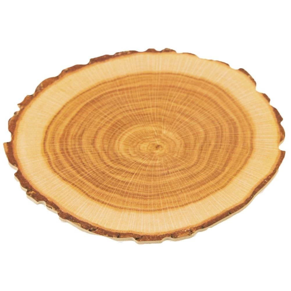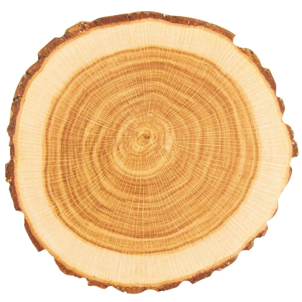 Realistische jaarringen en een rustieke rand geven je tafelsetting een knusse, natuurlijke sfeer zonder echt hout te gebruiken.