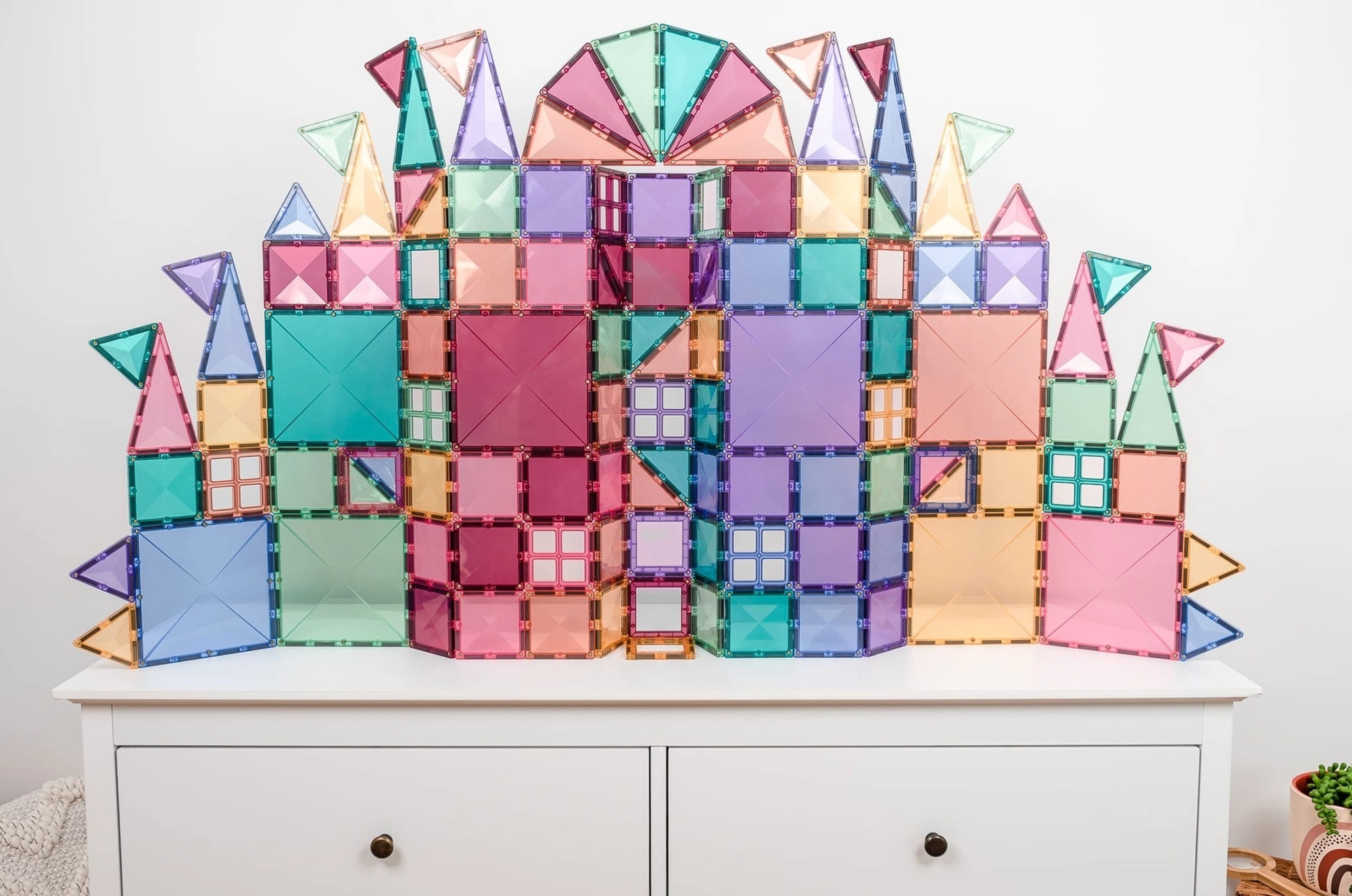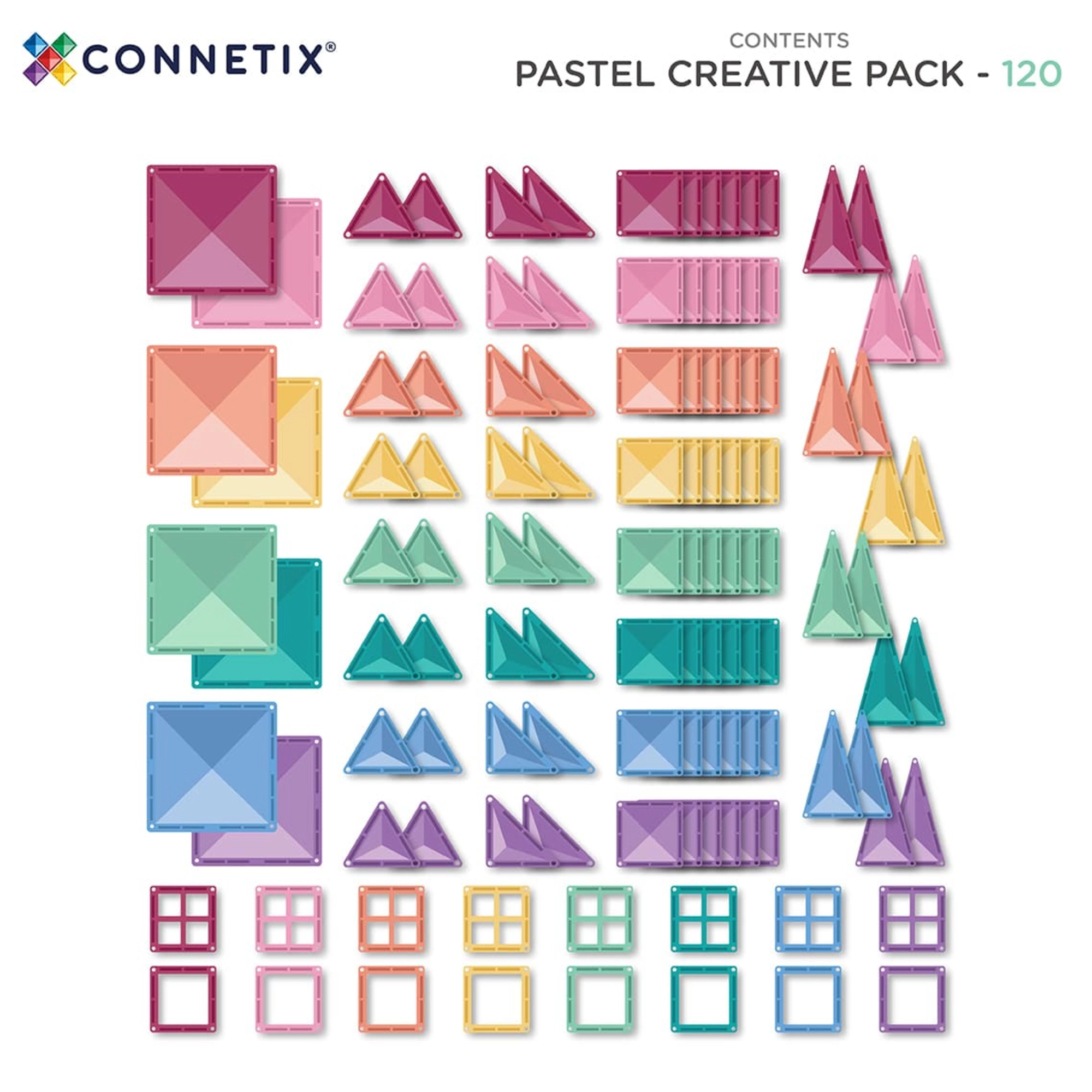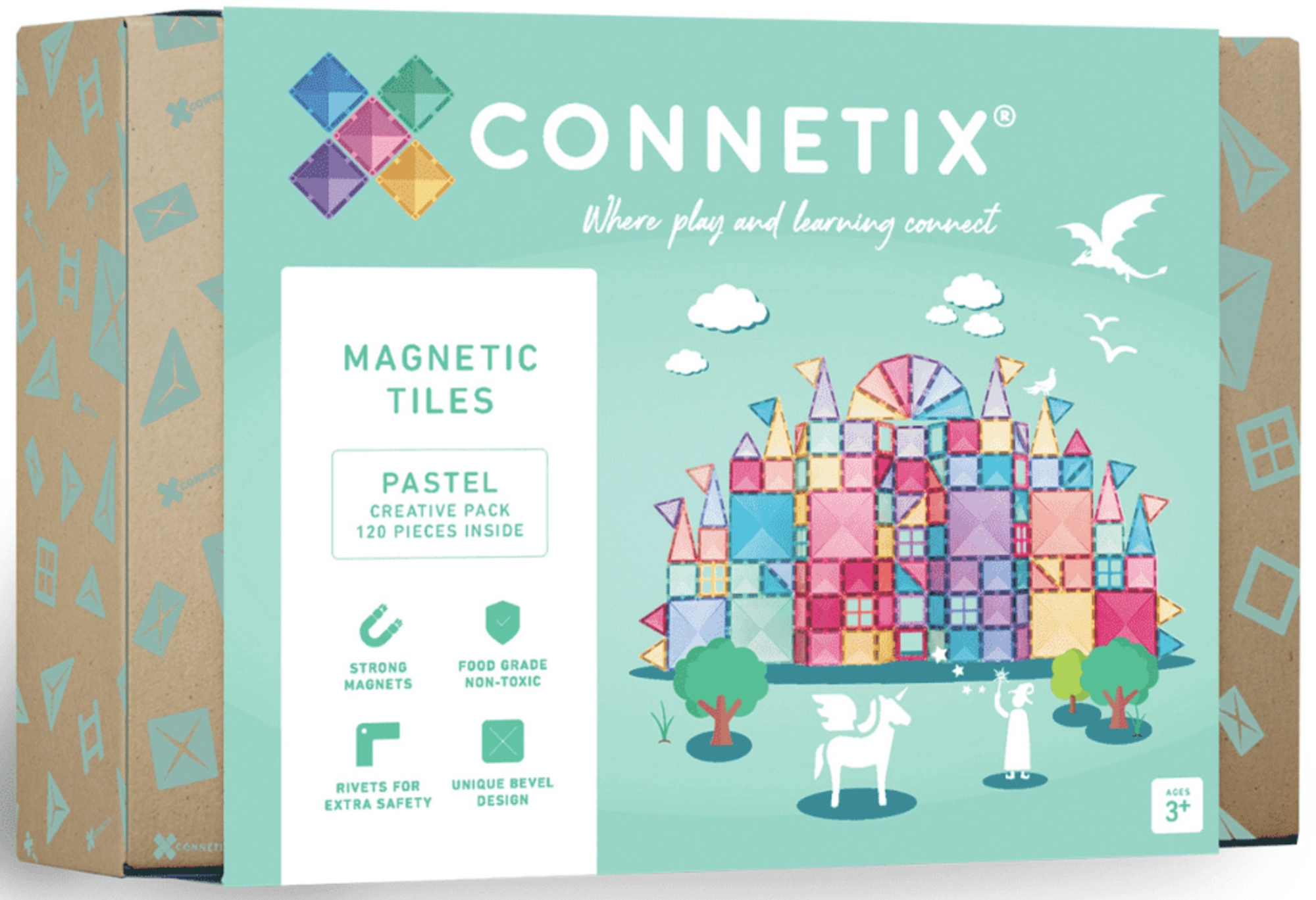 De CONNETIX Pastel Creative Pack biedt 120 transparante magnetische tegels in zachte pasteltinten voor het maken van kastelen, bruggen en futuristische torens. Dankzij de krachtige neodymiummagneten trekken de onderdelen van elke zijde aan en vormen ze stabiele constructies die STEM/STEAM-vaardigheden ondersteunen – van de fysica van magnetisme tot ruimtelijke geometrie.