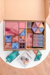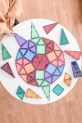 De CONNETIX pastel mega set biedt een ruime keuze aan vormen voor creatief bouwen – van kastelen en bruggen tot voertuigen en geometrische mandala’s. Onderdelen van hoogwaardig ABS zijn transparant, kleurecht en vormen dankzij sterke neodymiummagneten stabiele constructies. Spelen stimuleert op speelse wijze geometrie, natuurkunde, logisch denken en samenwerken.