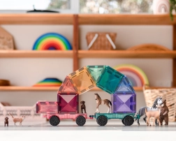 - Onbegrensde creativiteit: transparante pasteltinten, eenvoudig “klik”-koppelen, bouwwerken, voertuigen en mozaïeken.