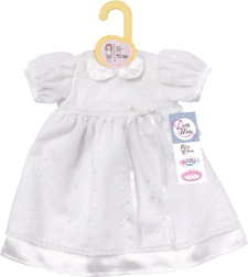Elegante witte jurkje voor poppen van 39–46 cm uit de collectie DOLLY MODA van het merk ZAPF CREATION. Klassieke snit met kraagje, korte gepofte mouwtjes en subtiele borduursels. Klittenbandsluiting zorgt voor gemakkelijk aan- en uittrekken. Inclusief kunststof kledinghanger. Ideaal voor feestelijk rollenspel – doop, familiefeestjes en fotosessies.