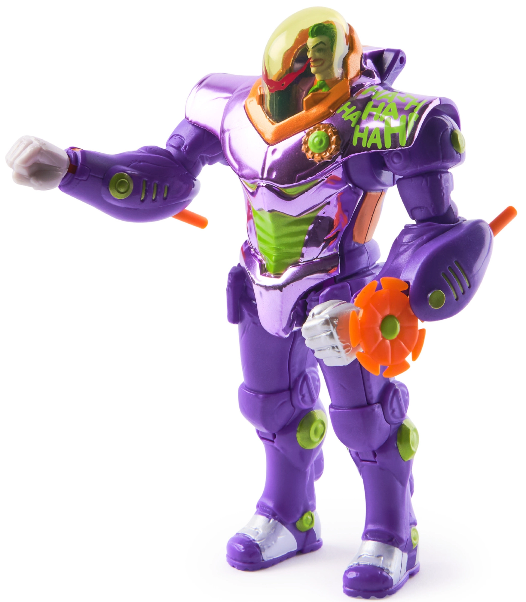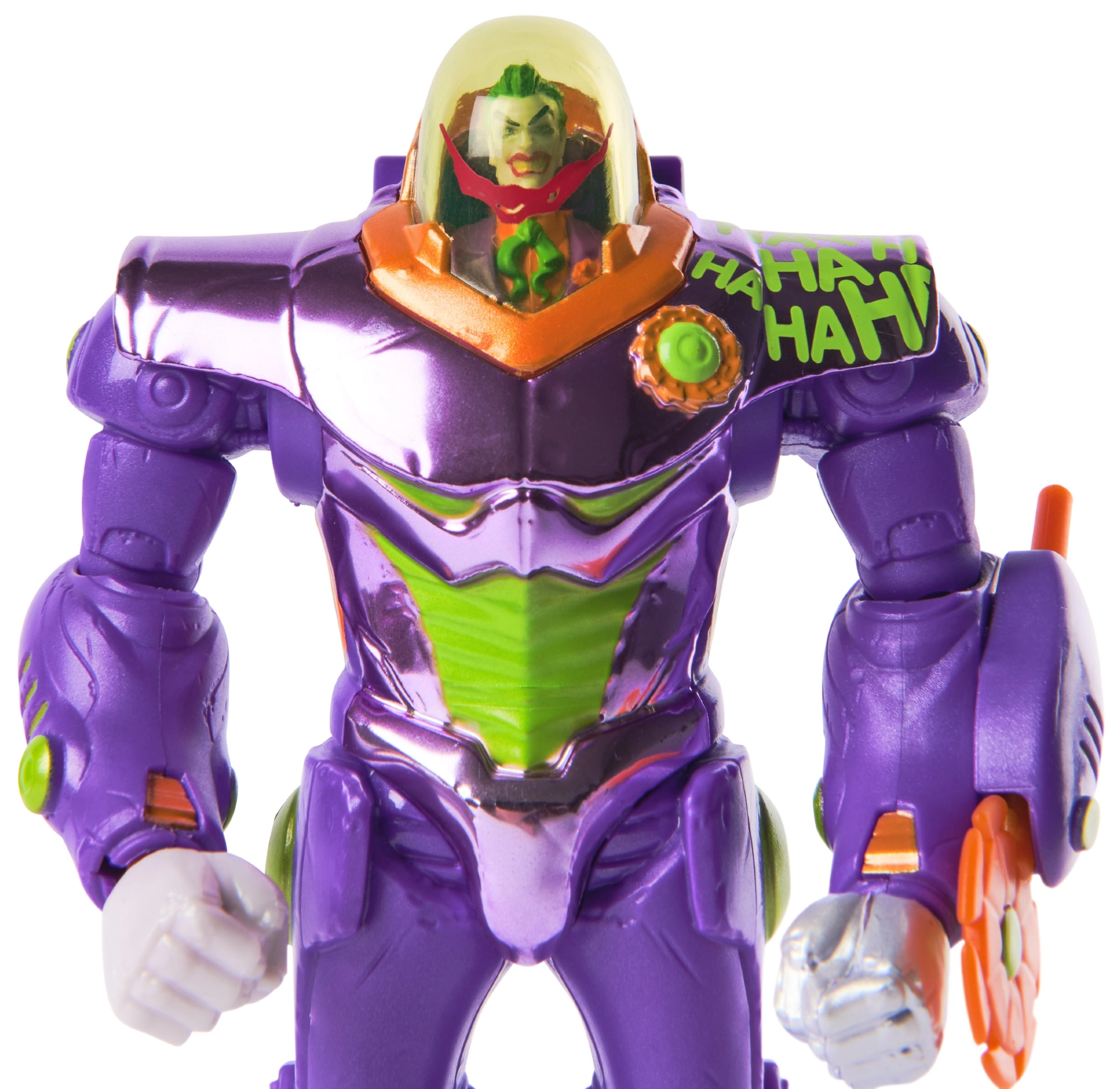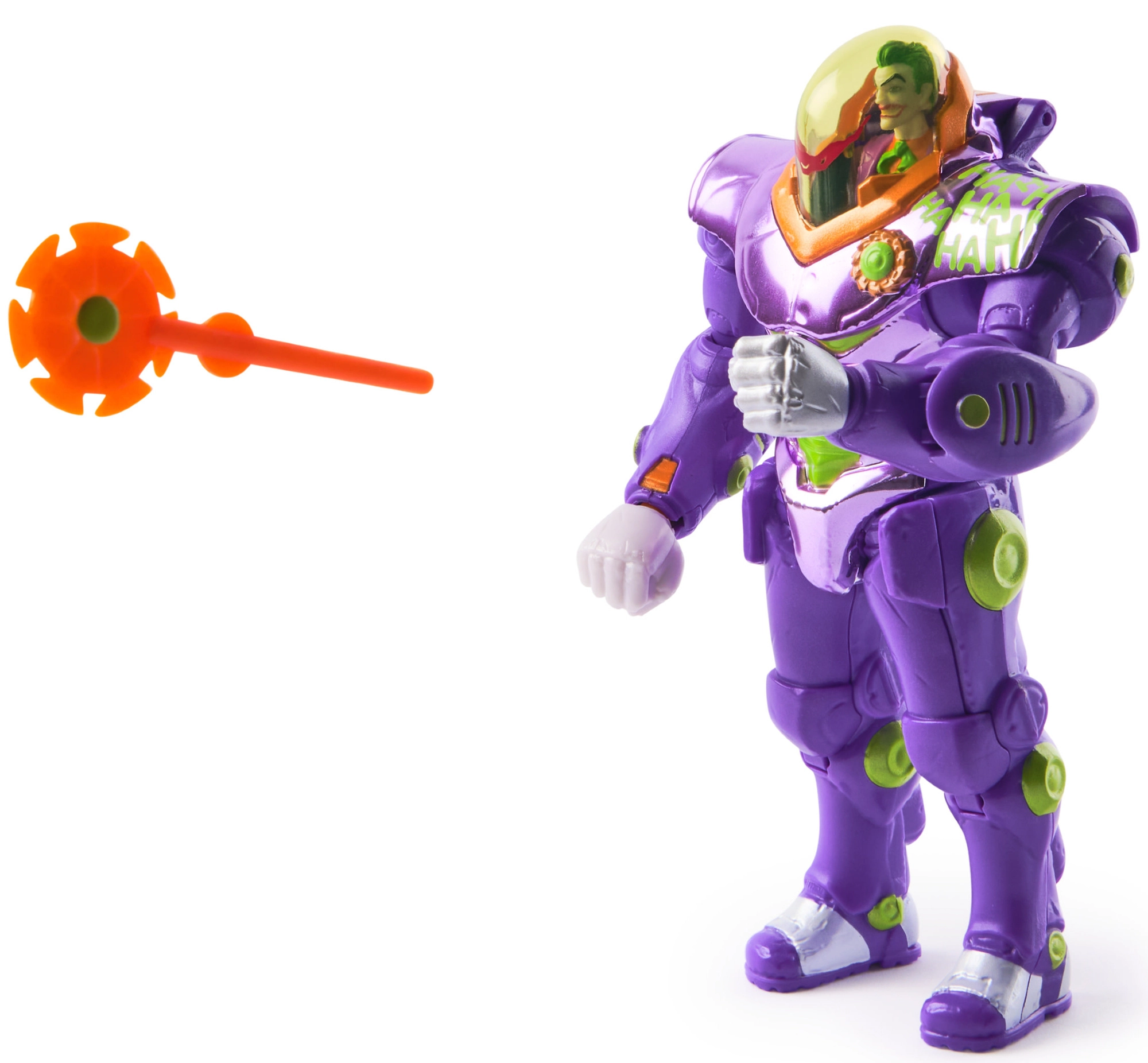 Het grote paarse harnas met transparant vizier biedt plaats aan het 10 cm figuur THE JOKER. Het openklapbare bovendeel maakt snel plaatsen van het figuur en actieklaar maken mogelijk.