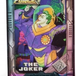 Joker‑figuur, mecha‑harnas, projectielen/schijven, verwisselbare opzet (vuist), standaard, verzamelkaart