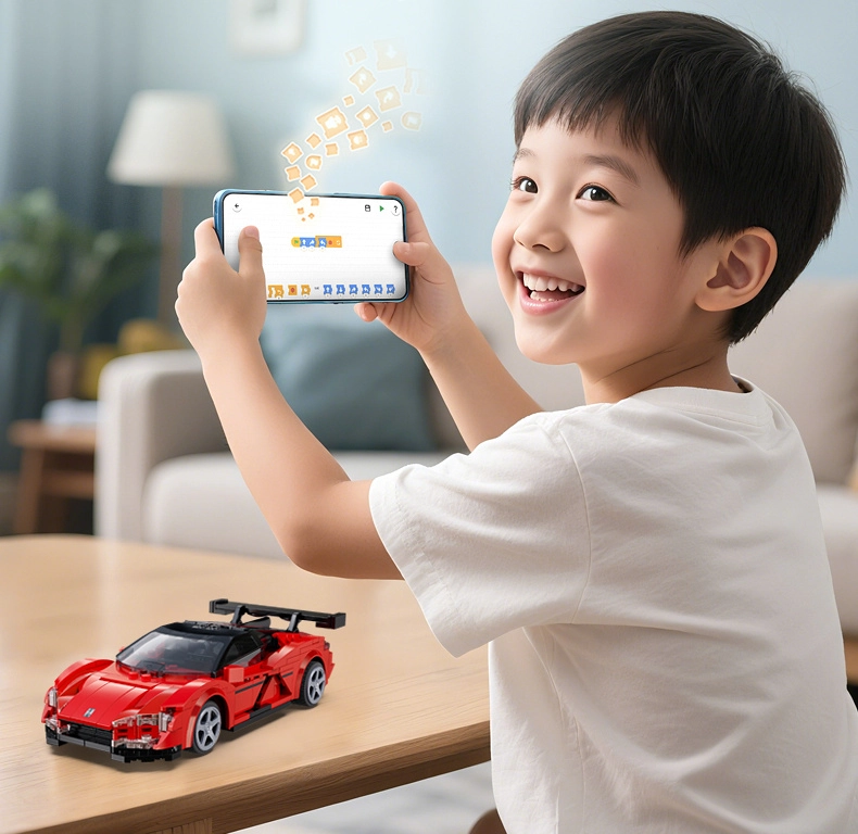 Het model rijdt tot 3,8 km/u en dankzij de dubbele bedieningsmodus kies je of je bestuurt met de meegeleverde 2,4 GHz-controller of via de app op je telefoon met meerdere slimme modi. Een uitstekende keuze voor kinderen vanaf 6 jaar die van techniek, creatief bouwen en dynamisch spel houden.