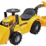 Deze robuuste tractor met aanhanger biedt kinderen volop speelplezier en stimuleert de motorische ontwikkeling. De bulldozerschep kan eenvoudig worden vervangen door een graafschep, zodat kleine bouwers kunnen laden, lossen en vervoeren afhankelijk van hun spel. Dankzij het comfortabele zitje met opbergvak hebben ze hun spulletjes altijd bij de hand.