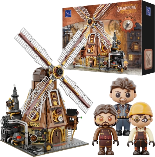 Betreed de wereld van uitvinders en fantasie met deze steampunk-bouwset, die doordachte constructie combineert met prachtige details – leidingen, tandwielen, ketels en industriële elementen. De draaiende wieken van de windmolen en andere bewegende onderdelen geven het model een realistische uitstraling en maken zowel het bouwen als het tentoonstellen tot een echte belevenis.
