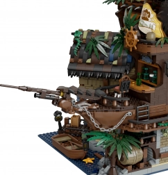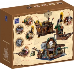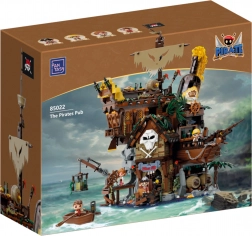 Breng zeeverhalen tot leven met deze rijk uitgewerkte bouwset van een piratenherberg. De constructie combineert rustiek hout, kettingen, vaten, lantaarns en het symbool van de schedel met gekruiste botten; ook een zeil, vlag en functionele details zoals deuren, een kraan en een kleine boot ontbreken niet. Het model betovert zowel kinderen als volwassen bouwers en wordt een opvallend stuk in elke collectie.