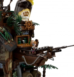 Inclusief figuurtjes van piraten en gasten, accessoires, een kanon en een kleine roeiboot. Het model biedt volop mogelijkheden voor display en spel.