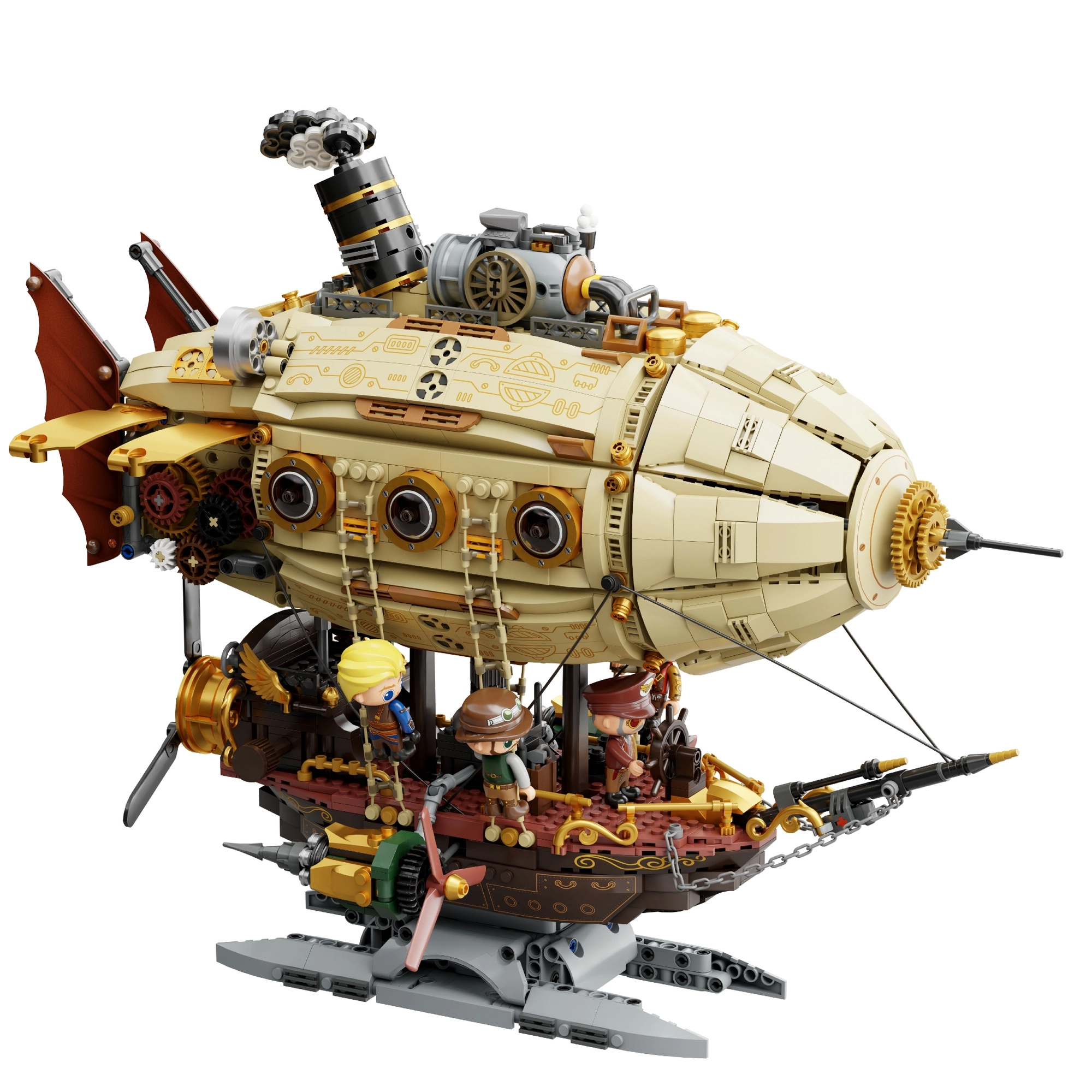 Dit steampunk luchtschip combineert elegante retro-esthetiek met unieke mechanische details. Na het bouwen springen de grote ballon, zijpropellers, touwwerk en tandwielen in het oog, wat het model een authentieke uitstraling en geweldige speelmogelijkheden geeft. Dankzij de bewegende onderdelen en het doordachte ontwerp is het genieten van zowel bouwen als tentoonstellen.