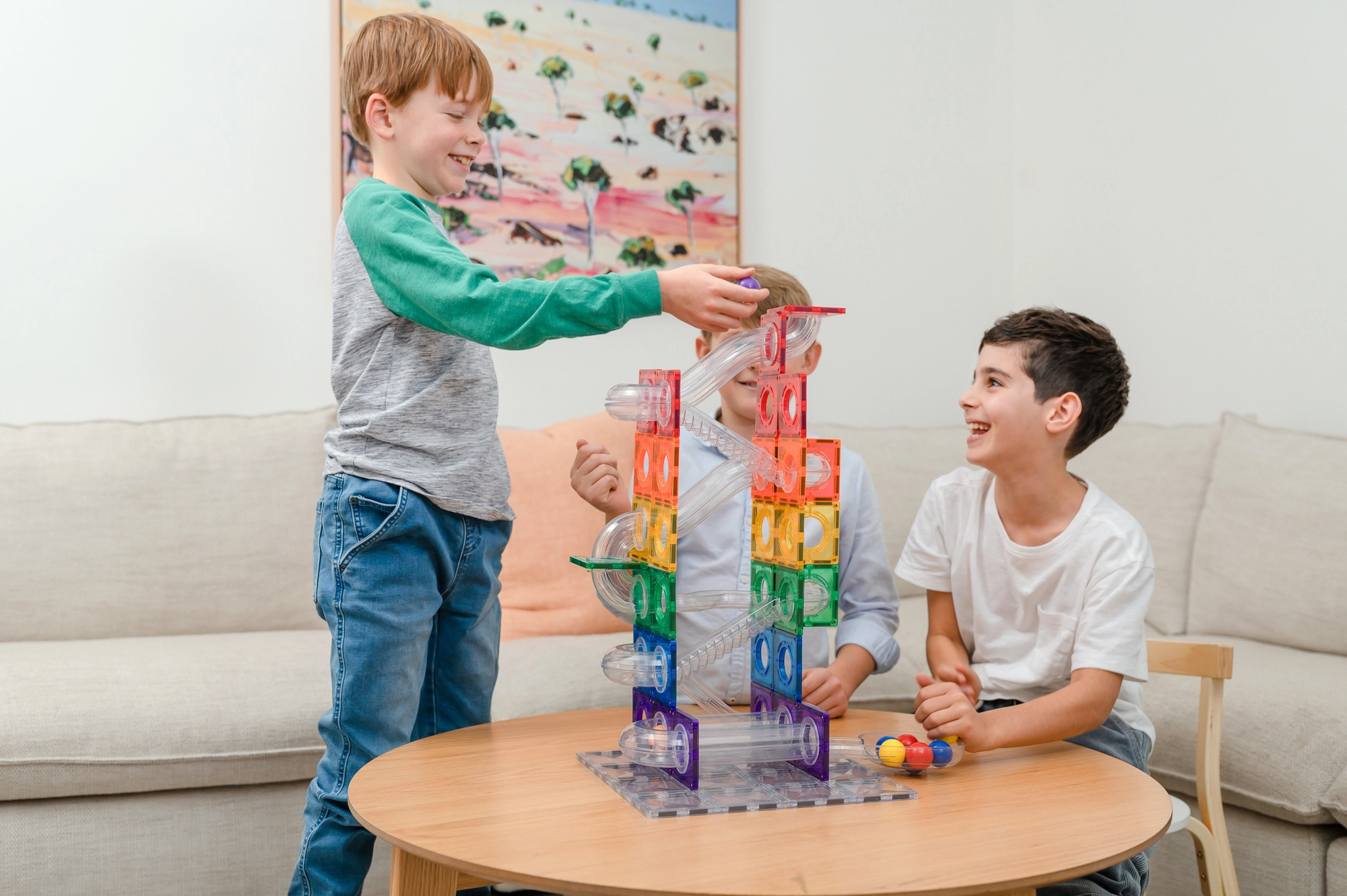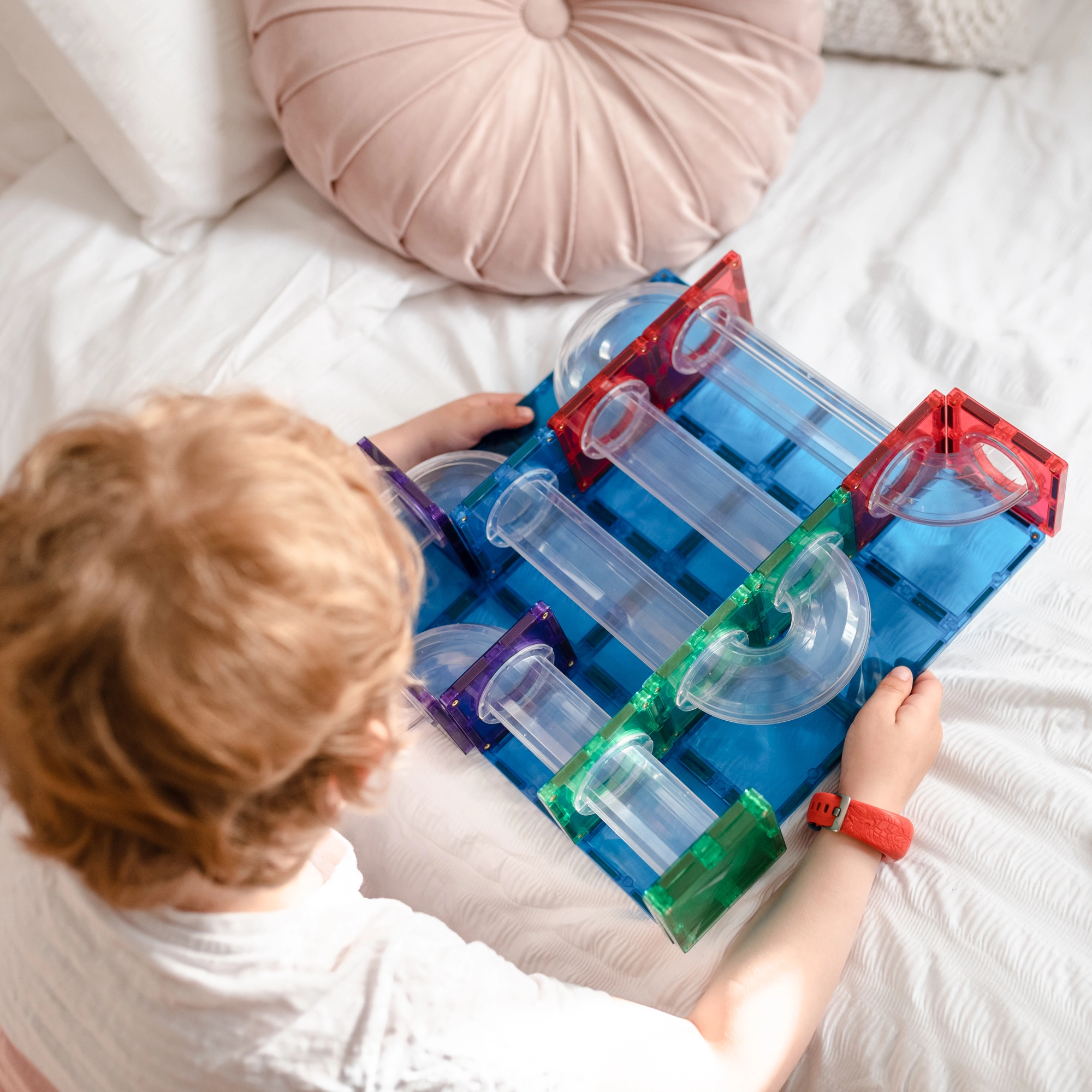 Bouw kleurrijke torens, bruggen en doordachte knikkerbanen, volg de route van knikkers door transparante tunnels en ontdek de principes van zwaartekracht, snelheid en balans. Connetix-tegels in regenboogkleuren hebben stevig geklonken magneten die van alle kanten aantrekken, waardoor constructies stabiel blijven en het “klik”-gevoel bij het verbinden extra bevredigend is.
