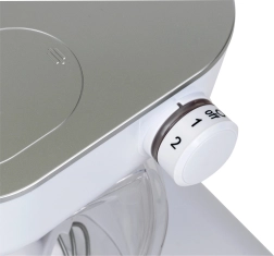 - 2 snelheden, licht en geluid, kantelbare arm, afneembare kom en garde