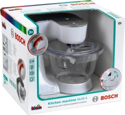 Realistische kinderkeukenmachine met officiële BOSCH-licentie van fabrikant KLEIN, ideaal voor kleine chefs. Met licht- en geluidseffecten, 2 snelheden, een kantelbare arm en een transparante kom met afneembare deksel. Veilige uitvoering, duurzame materialen en compact formaat zorgen voor urenlang creatief speelplezier in de keuken.