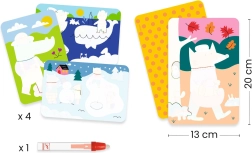 De waterkleurplaten 4 seizoenen van DJECO brengen kinderen schilderplezier zonder verf en vlekken. Na het vullen van de pen met water verschijnen er stap voor stap verborgen details op de kaarten – na het drogen verdwijnen ze weer en kan de pret opnieuw beginnen. Deze activiteit bevordert de fijne motoriek, concentratie en verbeeldingskracht.