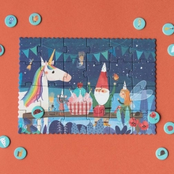 Ontdek de magische wereld van een avondlijk eenhoorn-verjaardagsfeest met de pocketpuzzel van het merk LONDJI. Dankzij het compacte formaat past hij in je zak of rugzak en vermaakt hij kinderen uitstekend in een café, trein of op bezoek.