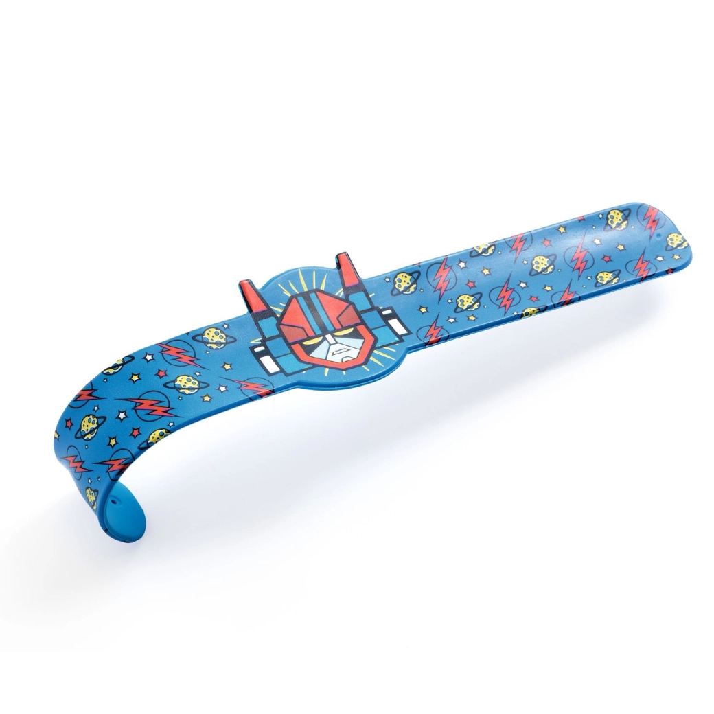 Ontdek de speelse slap-armbanden van DJECO met motieven van superhelden, dinosaurussen, tijgers en robots. Dankzij de flexibele metalen strip met duurzame kunststof coating klapt de armband na een lichte “klik” vanzelf om de pols. Kinderen zijn er dol op door het veilige en snelle omdoen en het opvallende design.