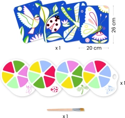 Ontdek de magie van schilderen met de speelse set van Djeco, ideaal voor de eerste schilderpogingen. Dankzij het praktische palet en het comfortabele penseel kunnen kinderen gemakkelijk kleuren uitproberen, tinten mengen en vrolijke afbeeldingen maken met motieven uit de weide.