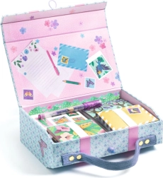 Stijlvol briefkoffertje voor kinderen van DJECO met alles voor het schrijven en versieren van brieven en berichtjes. In het praktische koffertje vind je enveloppen, kaartjes, stickers, een notitieblok en een pen – ideaal voor jonge schrijvers onderweg. Dankzij het stevige handvat en de lichte constructie is de set makkelijk mee te nemen en perfect als cadeau. Stimuleert creativiteit, fantasie en plezier in schrijven. Complete schrijversset, draagbaar koffertje, stickers en geïllustreerde kaartjes.