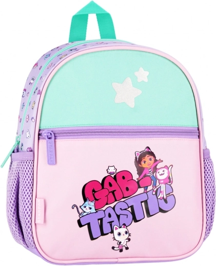 Een schattige kinderrugzak met Gabby's Dollhouse-motief in pasteltinten, ideaal voor de kleuterschool, uitstapjes en vrije tijd. Voorzien van een hoofdvak met rits, een voorvak met rits en mesh zijvakken voor een fles. Dankzij de gewatteerde en verstelbare schouderbanden is hij comfortabel te dragen, zelfs voor kleinere kinderen. Geschikt voor kinderen vanaf 3 jaar.