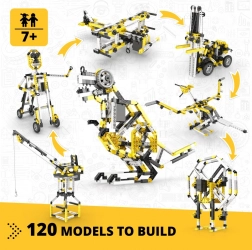 Deze veelzijdige bouwset biedt kinderen zowel plezier als educatie in één. Uit één set onderdelen bouw je auto's, helikopters, kranen, machines en mechanische mechanismen. De geïntegreerde motor op 2× AAA-batterijen (niet inbegrepen) brengt de modellen in beweging en leert kinderen de basis van mechanica.