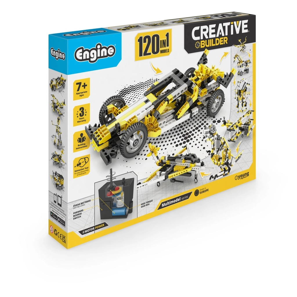 Bouwen is eenvoudig dankzij de gedrukte handleiding voor het eerste model en de interactieve Engino kidCAD-app voor de overige 119 modellen, waarin je constructies kunt draaien, inzoomen en in 3D verkennen. De set is compatibel met andere ENGINO-sets, waardoor de uitbreidingsmogelijkheden bijna onbeperkt zijn.
