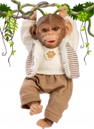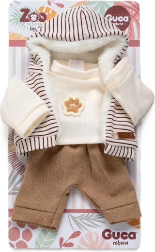 Deze stijlvolle set voor het Reborn-aapje van 32 cm bestaat uit drie op elkaar afgestemde items – een crèmekleurig T-shirt met lange mouwen en pootafdruk, een gestreept bodywarmpje met capuchon en warme voering, en een comfortabele broek. De outfit is ontworpen voor eenvoudig aan- en uitkleden, zodat kinderen snel de look van hun favoriete speelgoed kunnen veranderen.