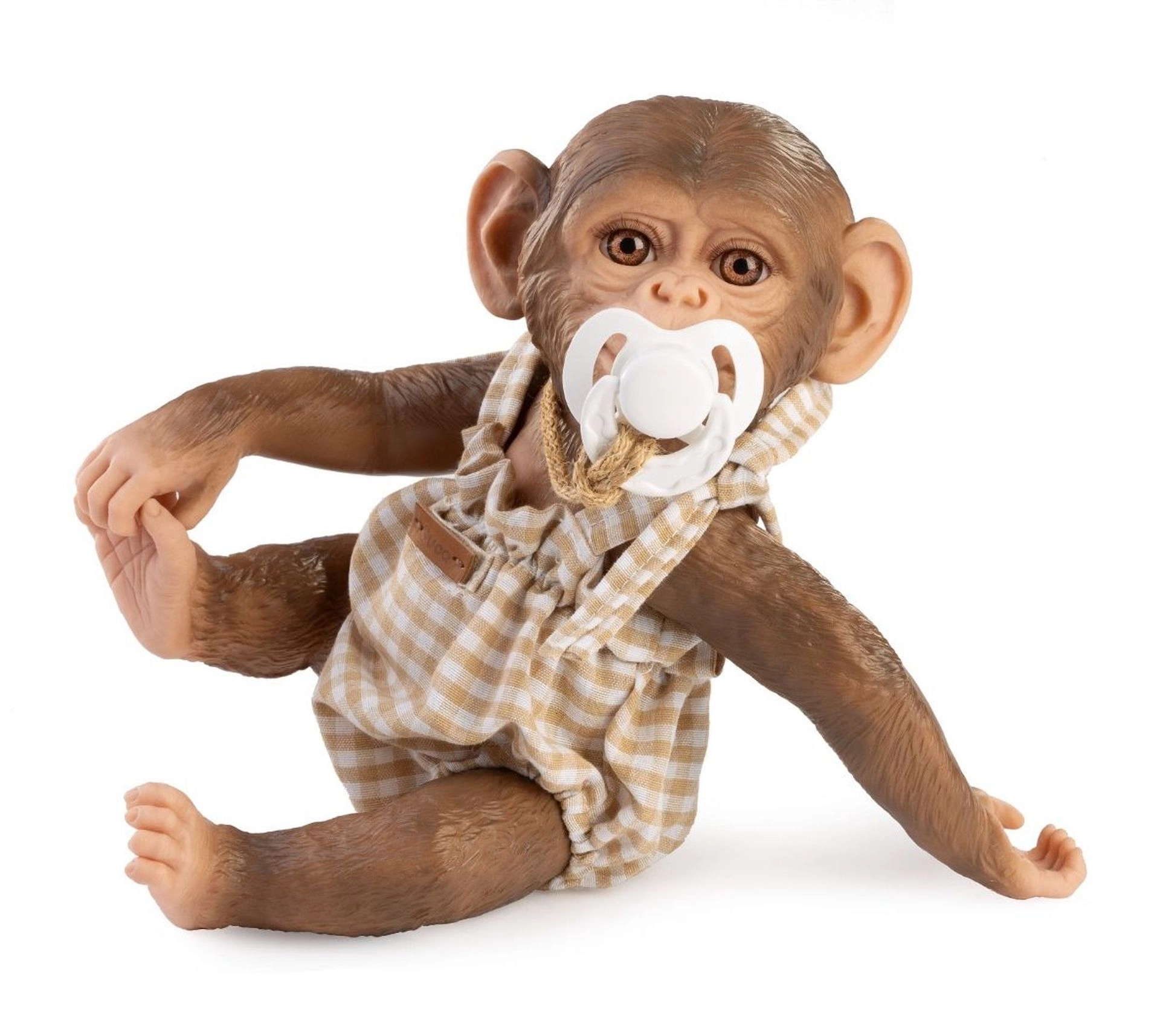 De witte speen aan een koord stimuleert fantasierijk spel en geeft de REBORN aapjesbaby een nog realistischer uiterlijk.