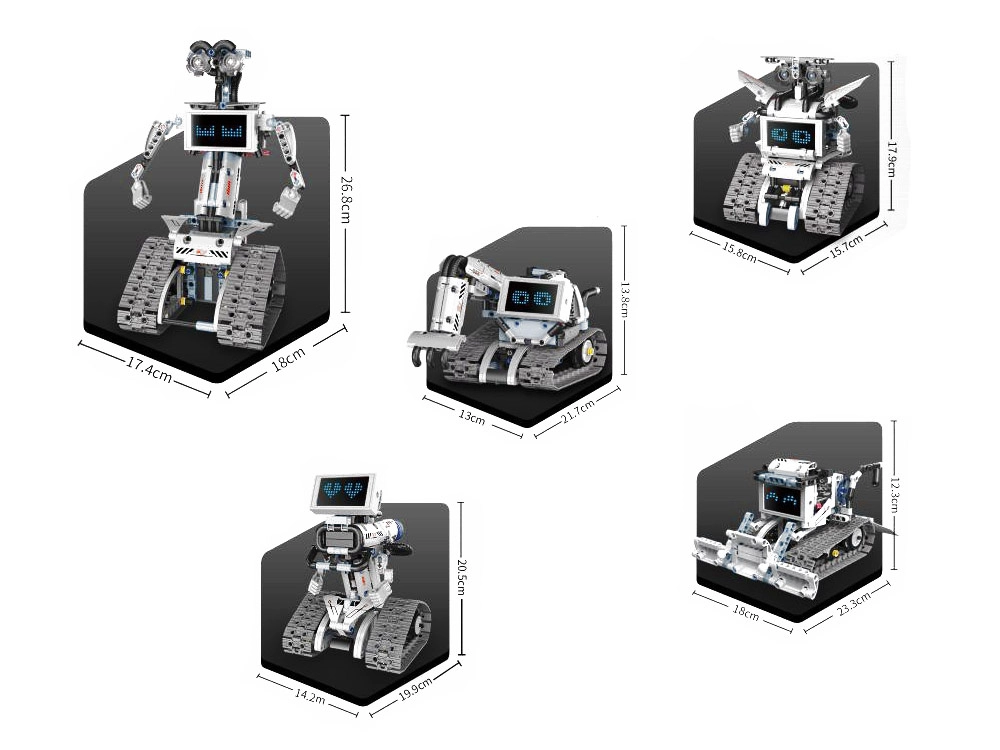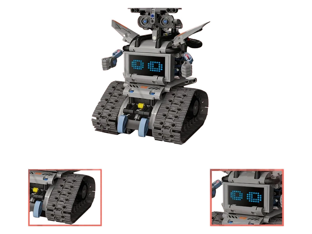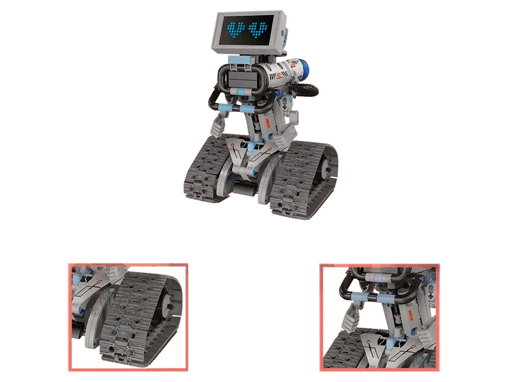 Deze moderne bouwset biedt alles wat kinderen nodig hebben om tot wel vijf verschillende robotmodellen te bouwen en te bedienen met één set onderdelen. Dankzij de afstandsbediening, rupsband-aandrijving en het opvallende “gezichts”-display beleven jonge ingenieurs urenlang speelplezier en leren ze tegelijkertijd.