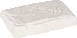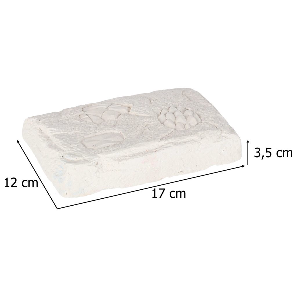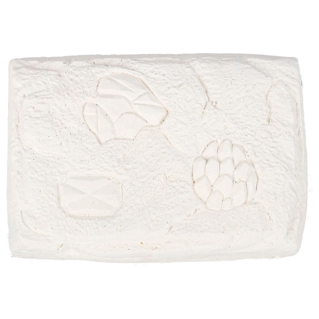 Het gipsblok verbergt kleurrijke steentjes en schelpjes. Kinderen onthullen ze stap voor stap met een beitel, hamertje en kwastje – precies zoals kleine archeologen.