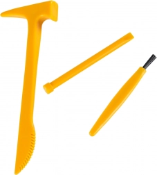 Lichte plastic tools liggen prettig in kinderhanden en maken comfortabel en veilig hakken en schoonmaken van vondsten mogelijk.