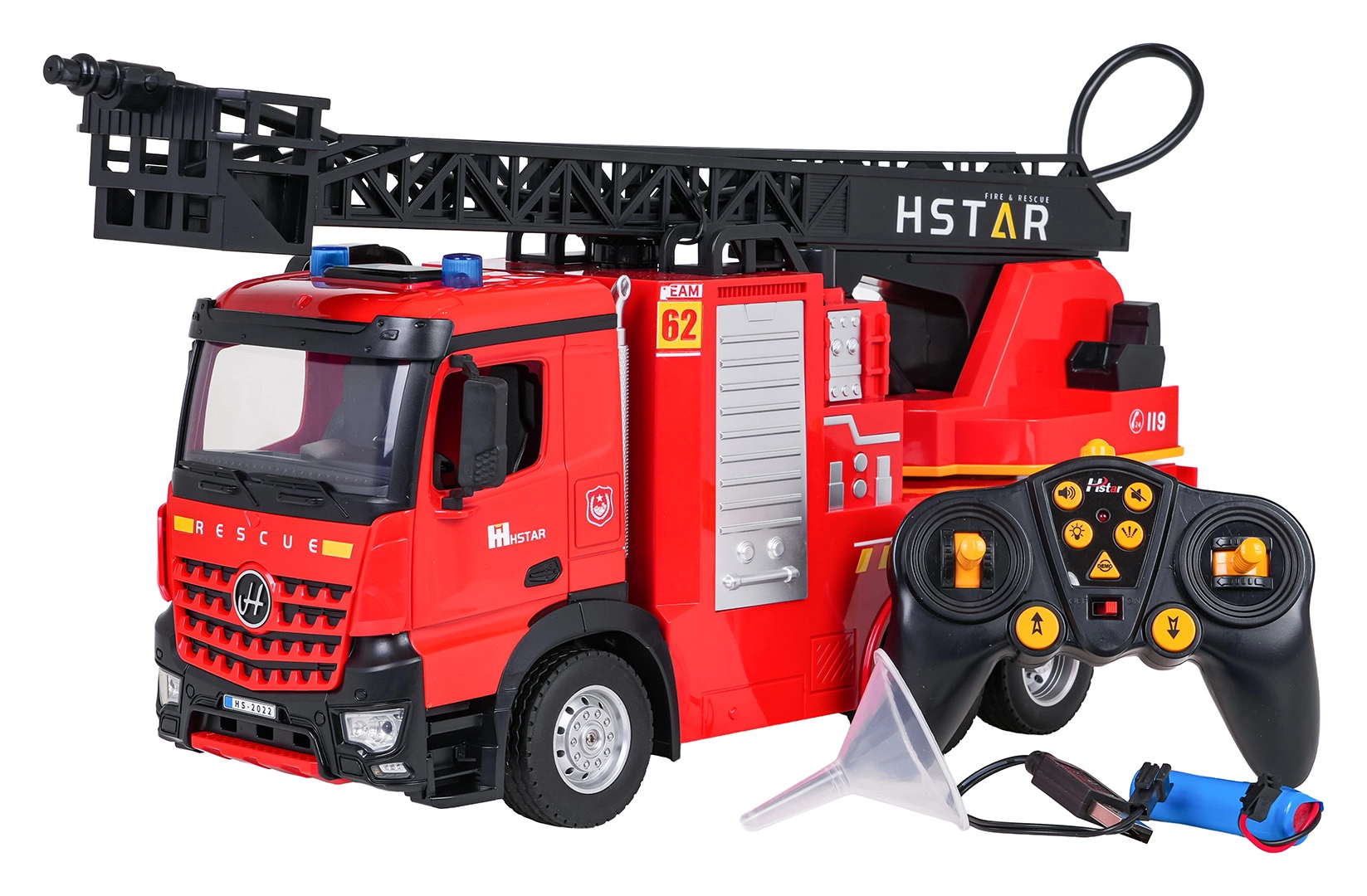 RC brandweerauto met uitschuifbare ladder en waternevel 2,4 GHz