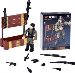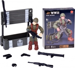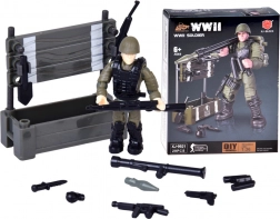 Deze compacte WOII-soldaat bouwset op schaal 1:36 biedt geweldig plezier voor zowel kinderen als verzamelaars. De onderdelen klikken eenvoudig in elkaar volgens de afbeeldingenhandleiding en binnen korte tijd maak je een figuur met veel details. Het voltooide model is stabiel en kan worden ingesteld in verschillende dynamische poses.