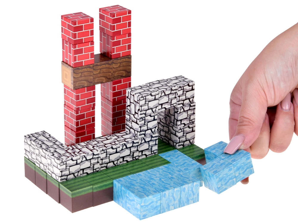 Pixelmagnetische blokken stimuleren creativiteit, verbeelding en fijne motoriek bij kinderen én volwassenen. Elke kubus heeft een realistische print (gras, water, baksteen, steen, hout), zodat je gemakkelijk kleurrijke scènes maakt van huisjes en beekjes tot bomen en terrastrappen.