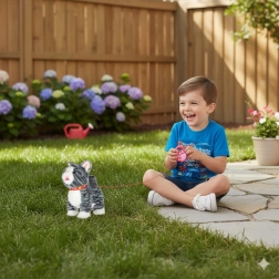 Het interactieve katje is dankzij de bediening aan de riem eenvoudig te leiden en gaat na het indrukken van de knop naar voren, begeleid door vrolijke melodieën. Bij aaien reageert het met miauwen en bewegingen van staart en tong, wat natuurlijk aanvoelt en kinderen snel een band laat opbouwen.