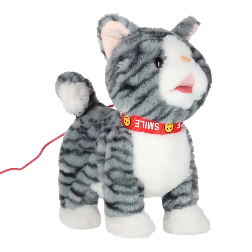 Door op de knop aan de riem te drukken, loopt de kat naar voren en speelt vrolijke liedjes af. Kinderen genieten zo van wandelingen met hun eigen “huisdier”, zowel binnen als buiten.