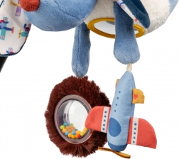 Hondje Jules biedt je baby veel prikkels voor de zintuiglijke ontwikkeling – van weerspiegelingen in het spiegeltje tot knisperende en rammelende effecten. Door de hangende uitvoering bevestig je het eenvoudig aan de kinderwagen, het autostoeltje of het ledikant, zodat je kind zich thuis en onderweg kan vermaken.