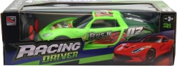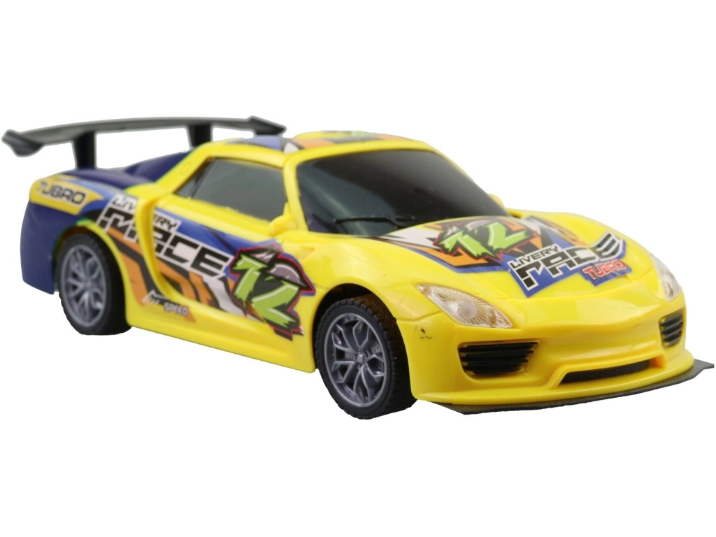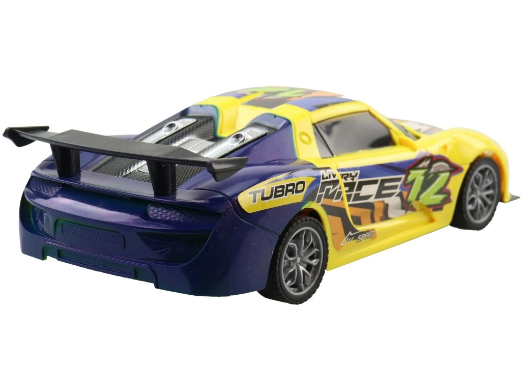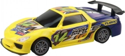 De sportieve carrosserie met spoiler, race-stickers en gedetailleerde wielen spreekt kleine snelheidsliefhebbers aan en stimuleert creatief spel.