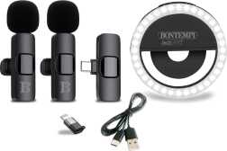 Set voor audio en licht (mini LED-ring + 2× draadloze lavaliermicrofoon)
