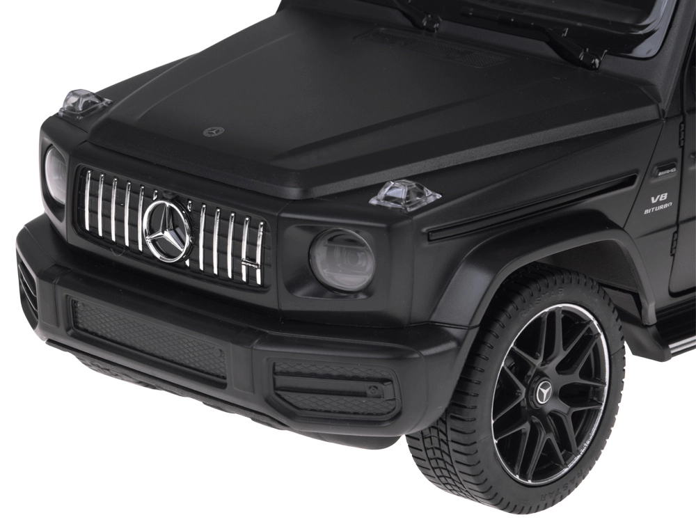 Dit gelicentieerde RC-voertuig MERCEDES-AMG G 63 van Rastar verrast met de precieze afwerking van exterieur en interieur – van het realistische dashboard tot de karakteristieke lijnen van de carrosserie. Het model biedt te openen voorportieren en achterklep en het effect van verlichting bij vooruit- en achteruitrijden, wat de realistische beleving versterkt.