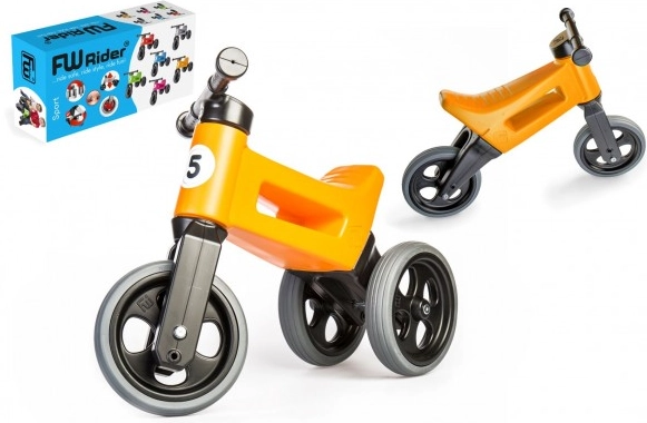 De lichte loopfiets FUNNY WHEELS Rider Sport 2-in-1 groeit met je kind mee dankzij de eenvoudige omzetting van een driewieler naar een tweewieler. Hij biedt een verstelbare zithoogte van 28/30 cm, stille, zachte wielen die bestand zijn tegen lekrijden en een veilige stuurbegrenzing. Ideaal voor kinderen vanaf 18 maanden met een draagvermogen van 25 kg, gemaakt van ongevaarlijk kunststof in de Tsjechische Republiek.
