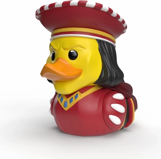 Het TUBBZ mini-eendje brengt Lord Farquaad in een leuke eend-variant met alle karakteristieke details – rode hoed, mantel en opvallende kraag. Dankzij het compacte formaat van 5,5 cm past hij perfect op je bureau, plank of in de vitrinekast naast andere personages uit de Shrek-serie.