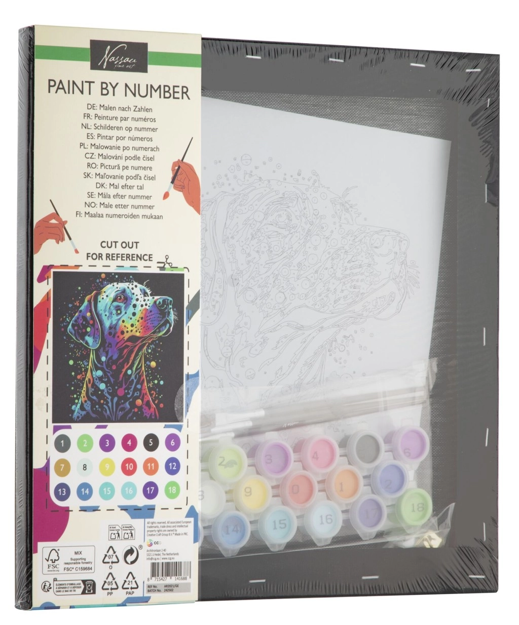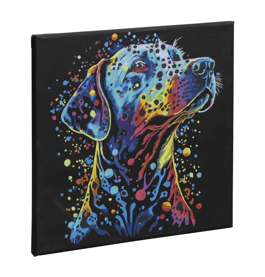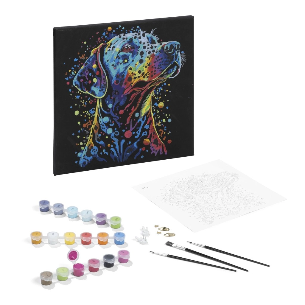 Schilderen op nummer is een geweldige manier om te ontspannen en tegelijk een origineel kunstwerk te creëren. Het zwarte canvas geeft het hondenmotief een opvallend contrast en een elegante uitstraling die in elk interieur tot zijn recht komt. De set is geschikt voor zowel beginners als gevorderden – volg simpelweg de nummers en kleuren.