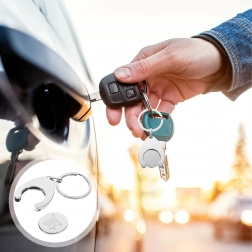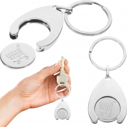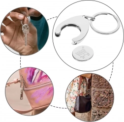 Slimme 2-in-1 oplossing: een elegante metalen sleutelhanger met uitneembaar muntje om een winkelwagen los te maken. Dankzij de stevige ring bevestig je hem makkelijk aan je sleutels, tas of rugzak en heb je snel toegang tot een wagen zonder munt.