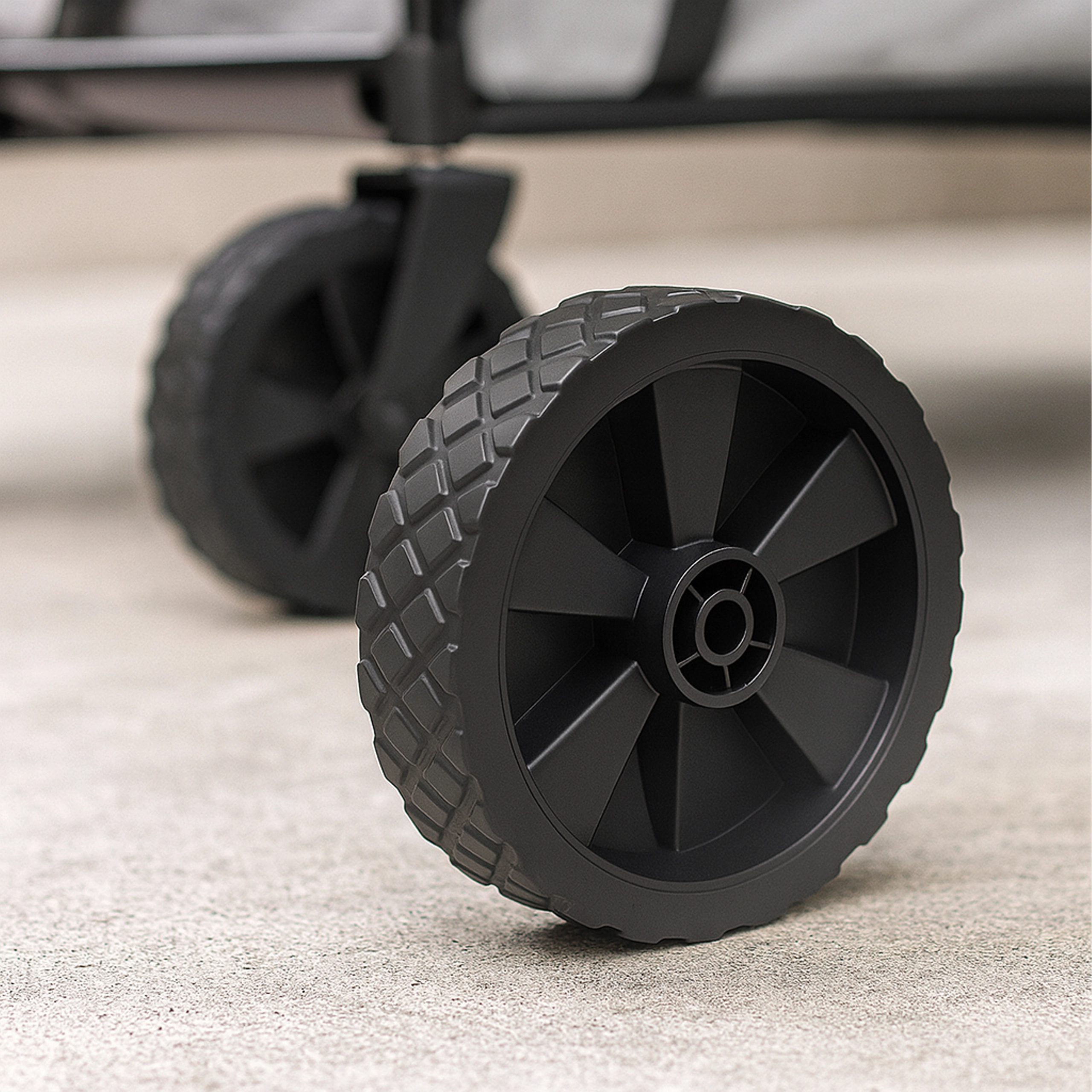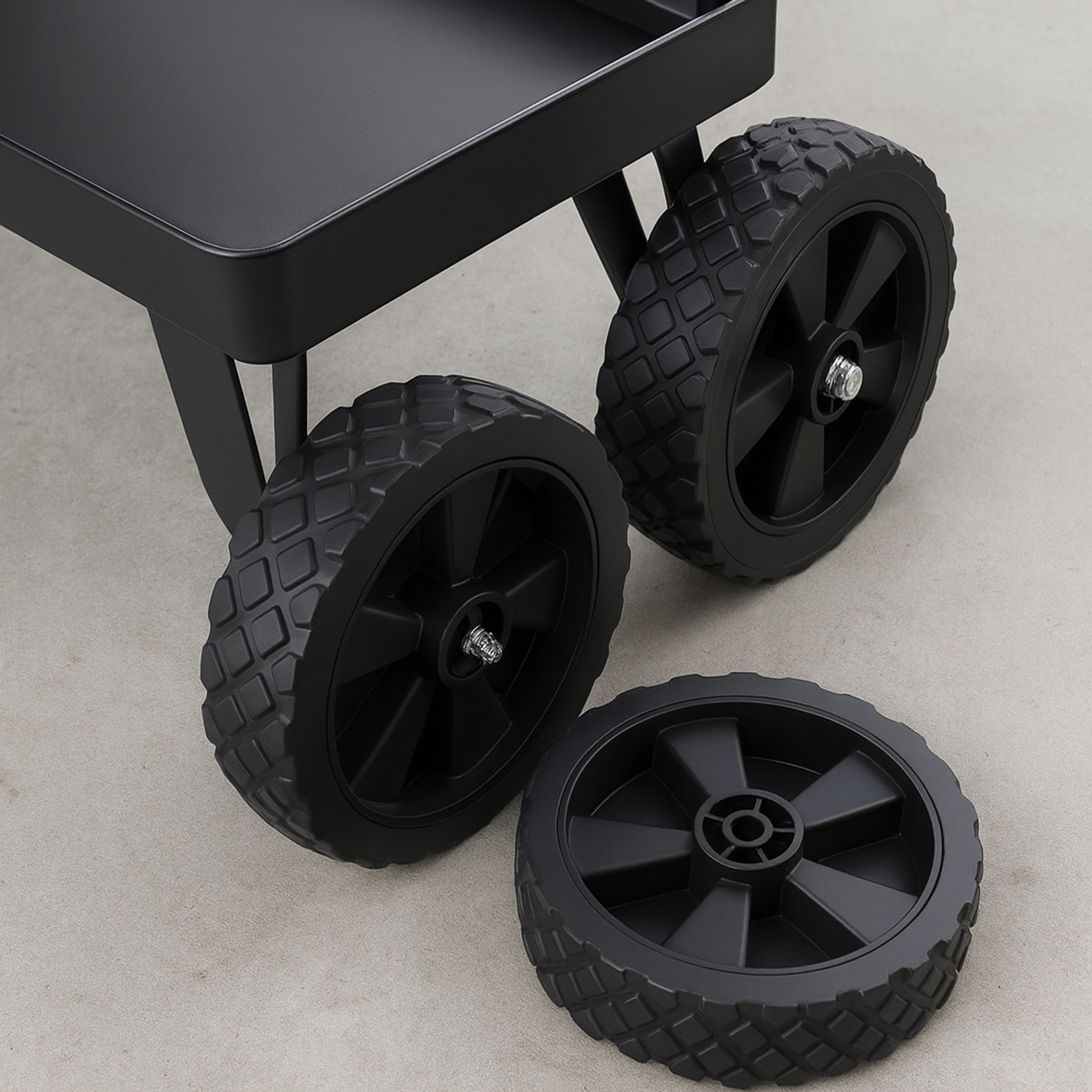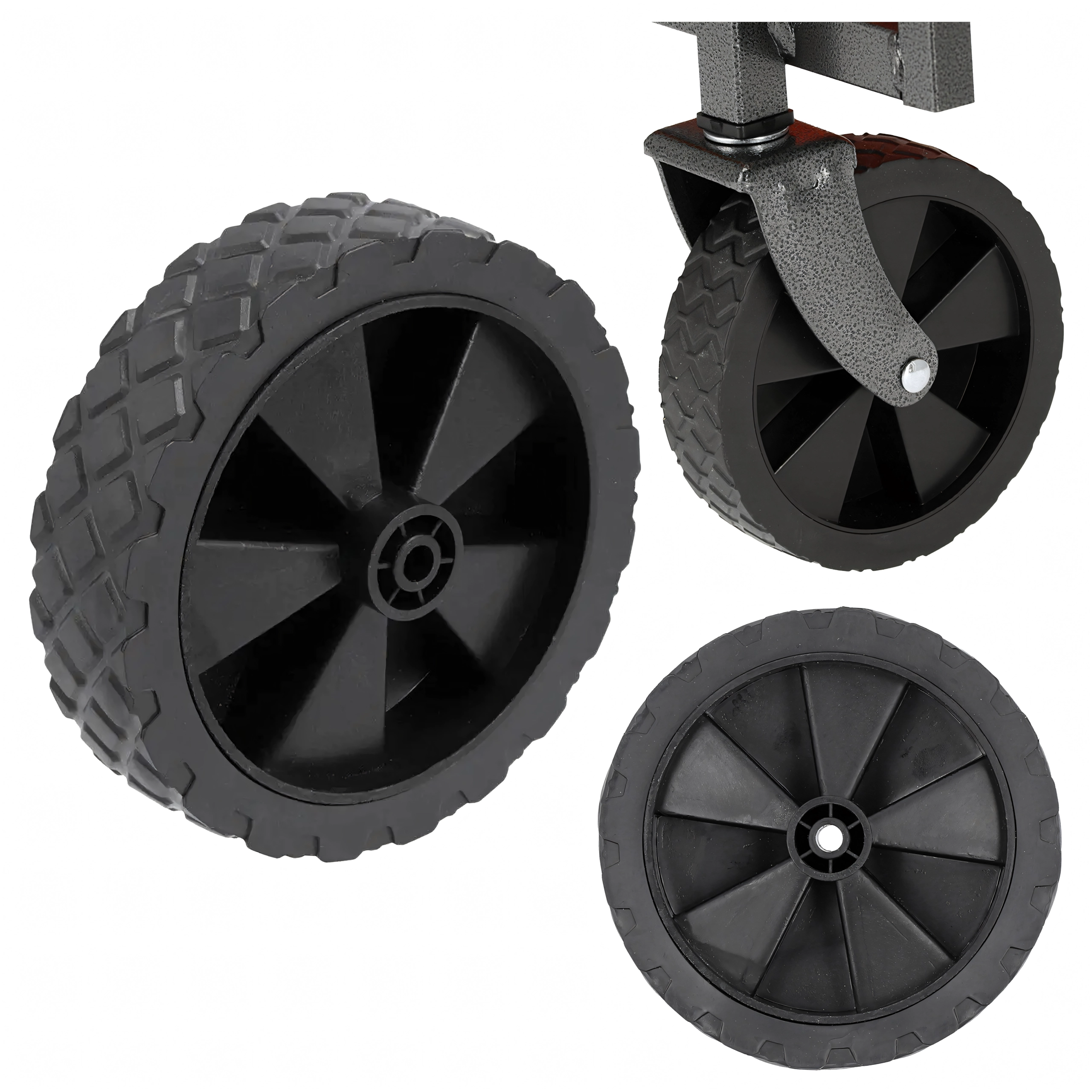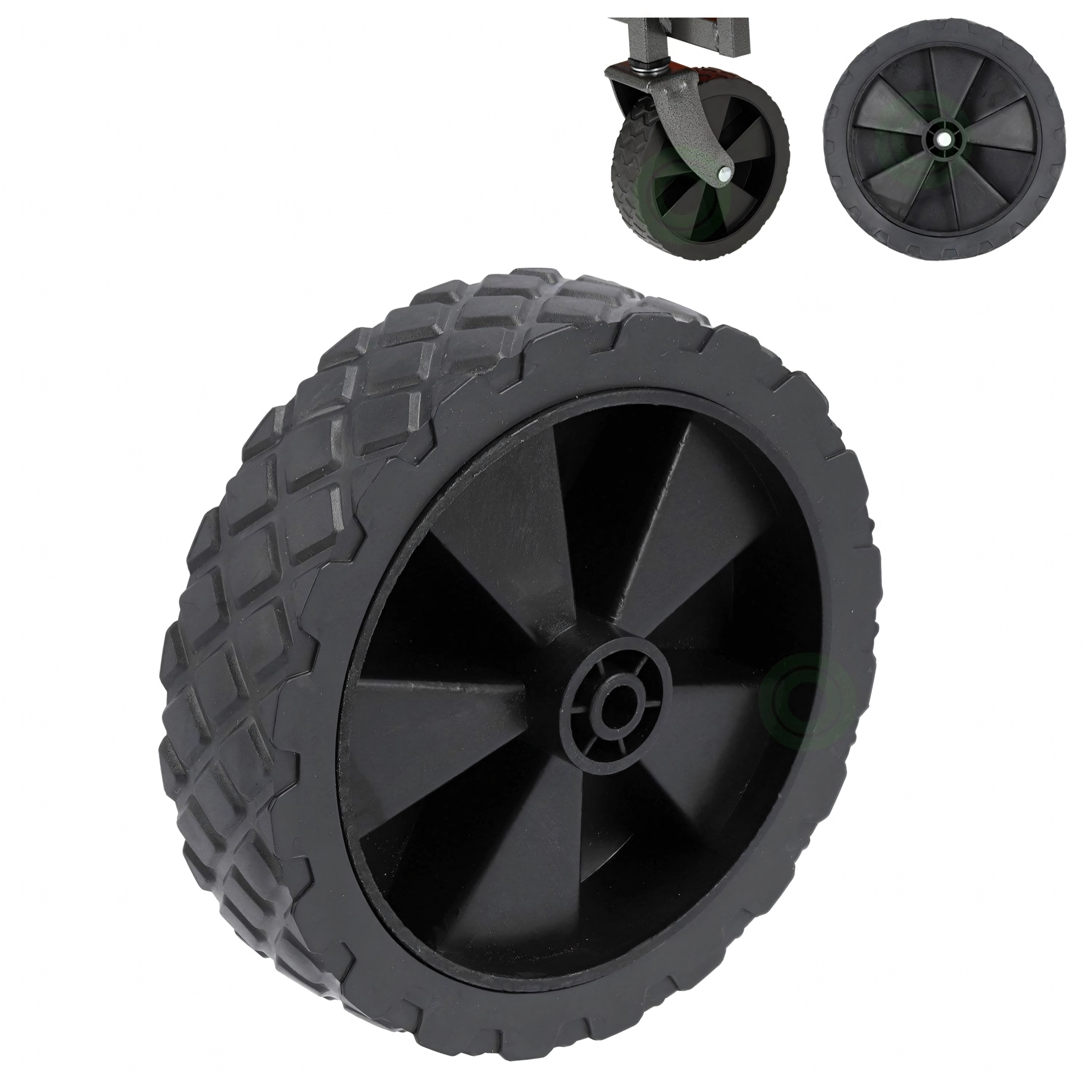Betrouwbaar reservewiel met een robuust loopvlak voor zekere grip en soepel bewegen op diverse ondergronden — van bestrating tot tuinpaden. Dankzij de lichte maar stevige constructie met spaaknaaf is het wiel eenvoudig op de as te plaatsen en biedt het stabiliteit bij het vervoeren van lading.