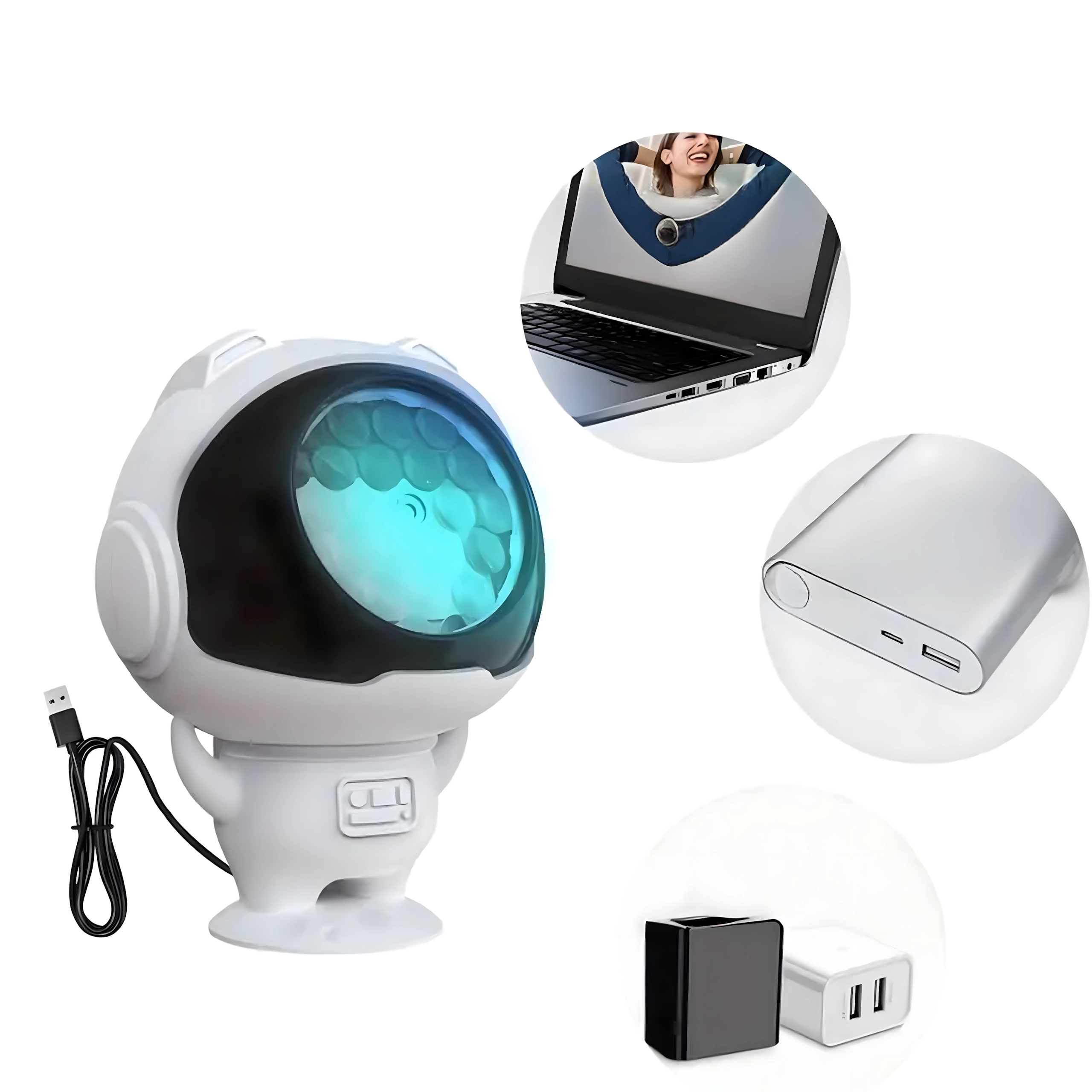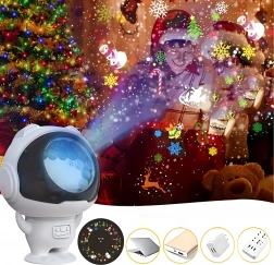 Compacte projector in astronautvorm met stabiele voet, geschikt voor tafel, plank en vensterbank en een mooie aanvulling op uw winterdecoratie.
