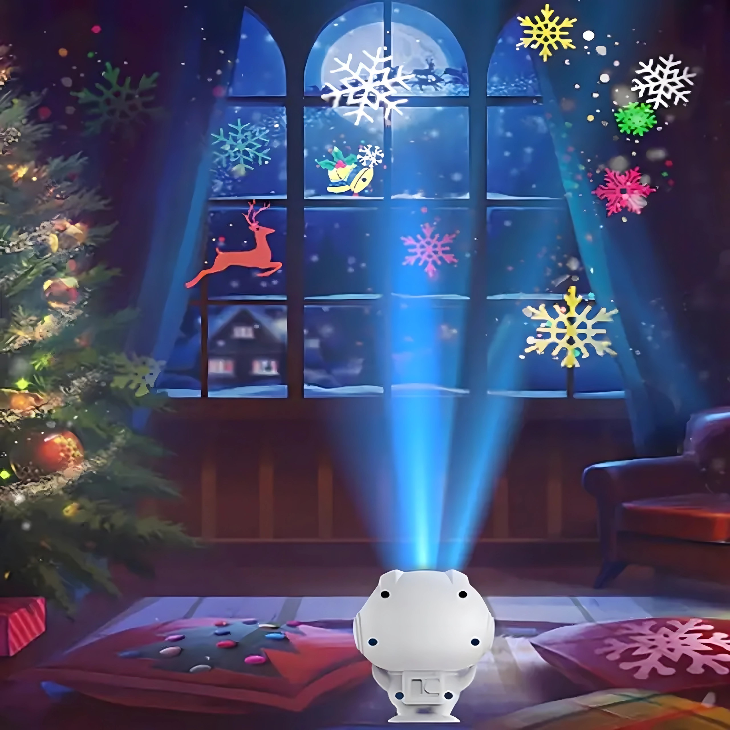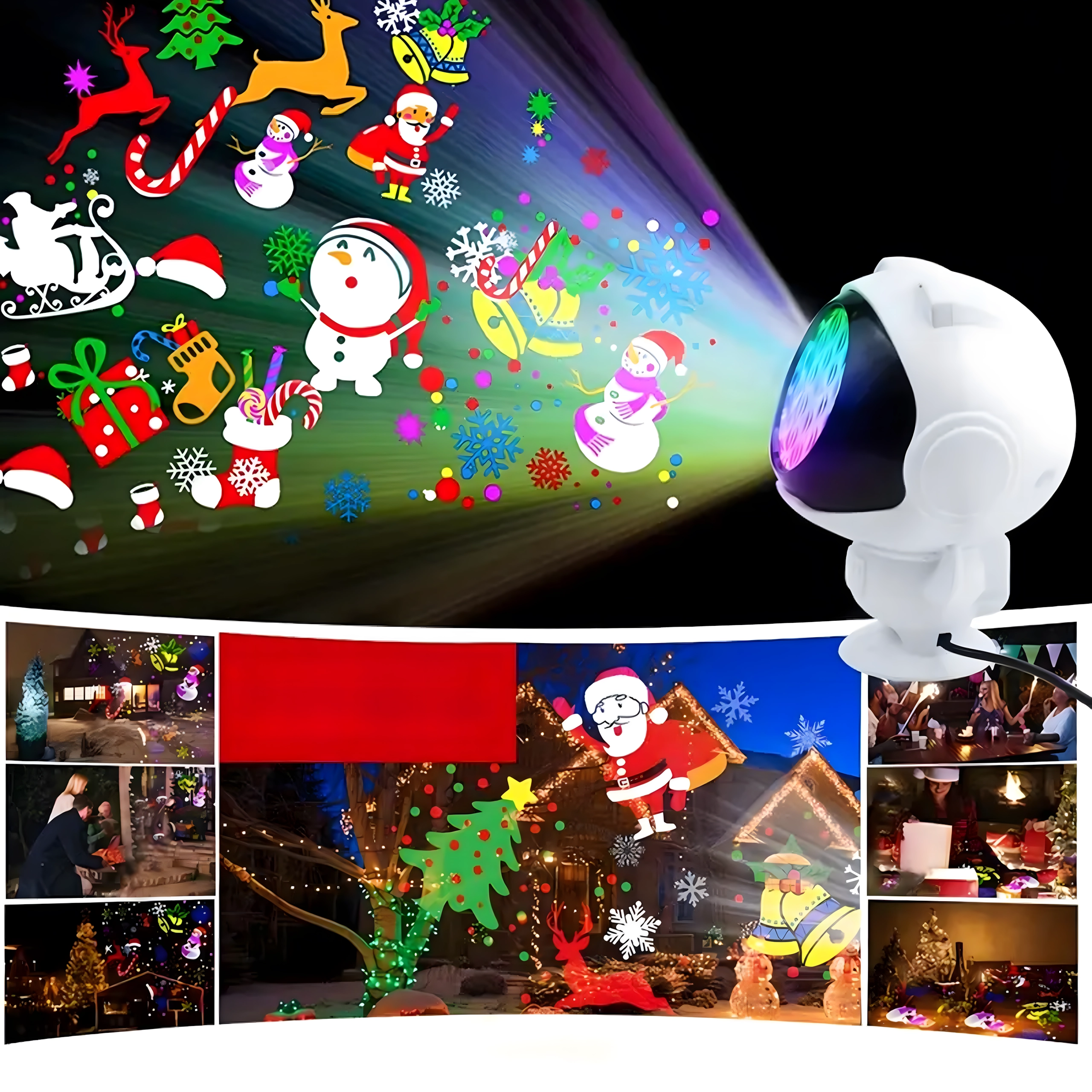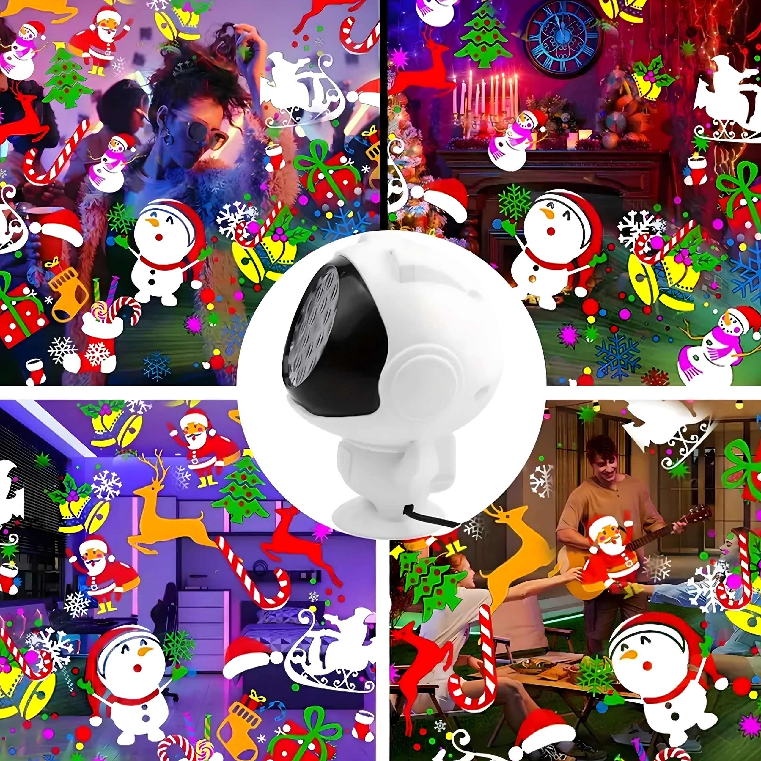 Kleurige sneeuwvlokken, sneeuwpoppen, rendieren en de Kerstman vullen de kamer met een magische sfeer – ideaal voor de feestdagen, feestjes en dagelijks genieten.