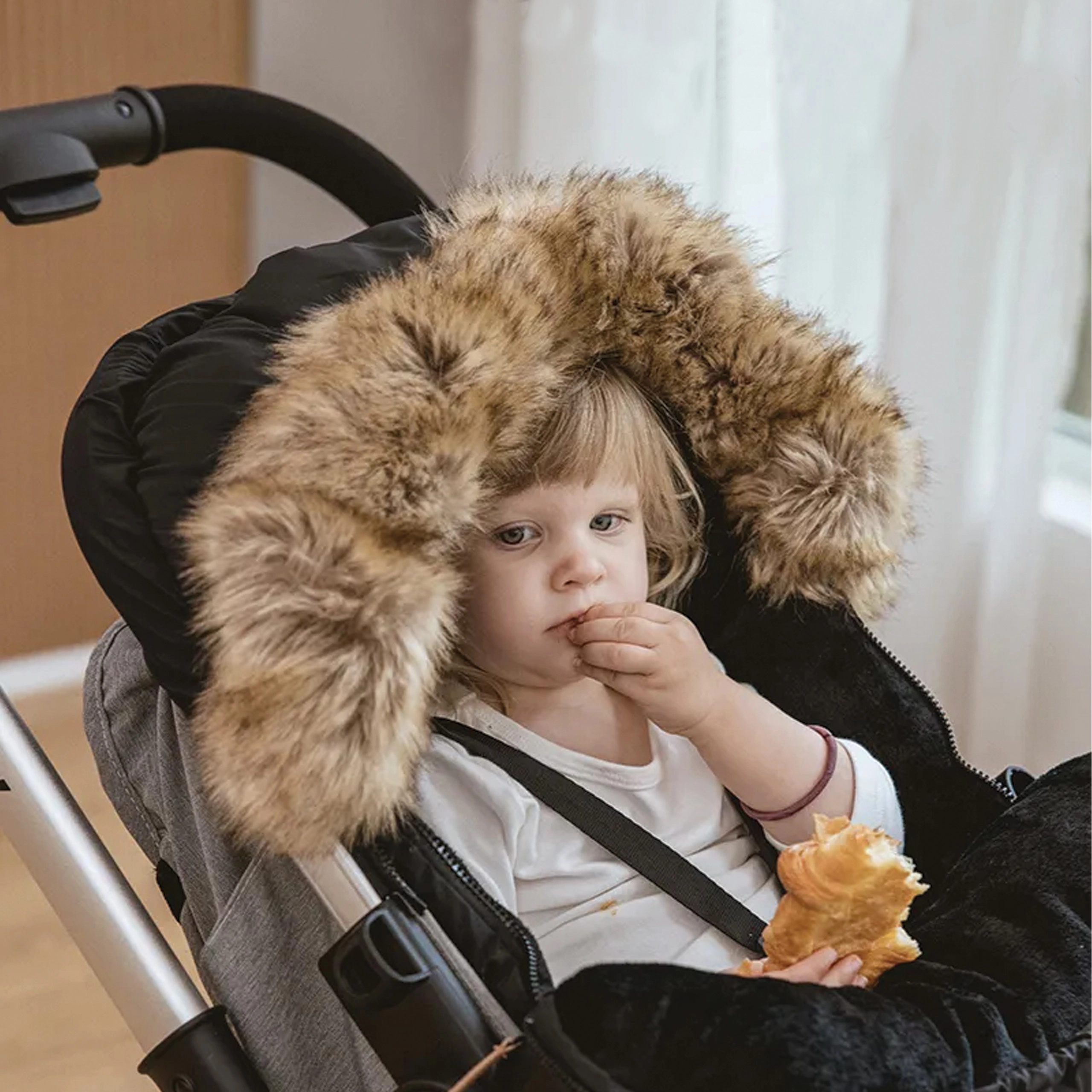 Dikke voering, een zachte binnenkant en een kap met bont houden je kind warm tijdens winterse wandelingen. Ideaal om te slapen én te zitten.