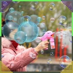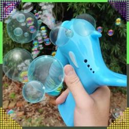 Maak elke middag van kinderen vrolijk met bellenpret! Het bellenblaaspistool in dolfijnvorm spuwt na het bevestigen van het flesje met oplossing tientallen tot honderden bellen in slechts enkele seconden. Gewoon de vulling indraaien, op de trekker drukken en genieten van een regenboogshow in de buitenlucht of binnen.