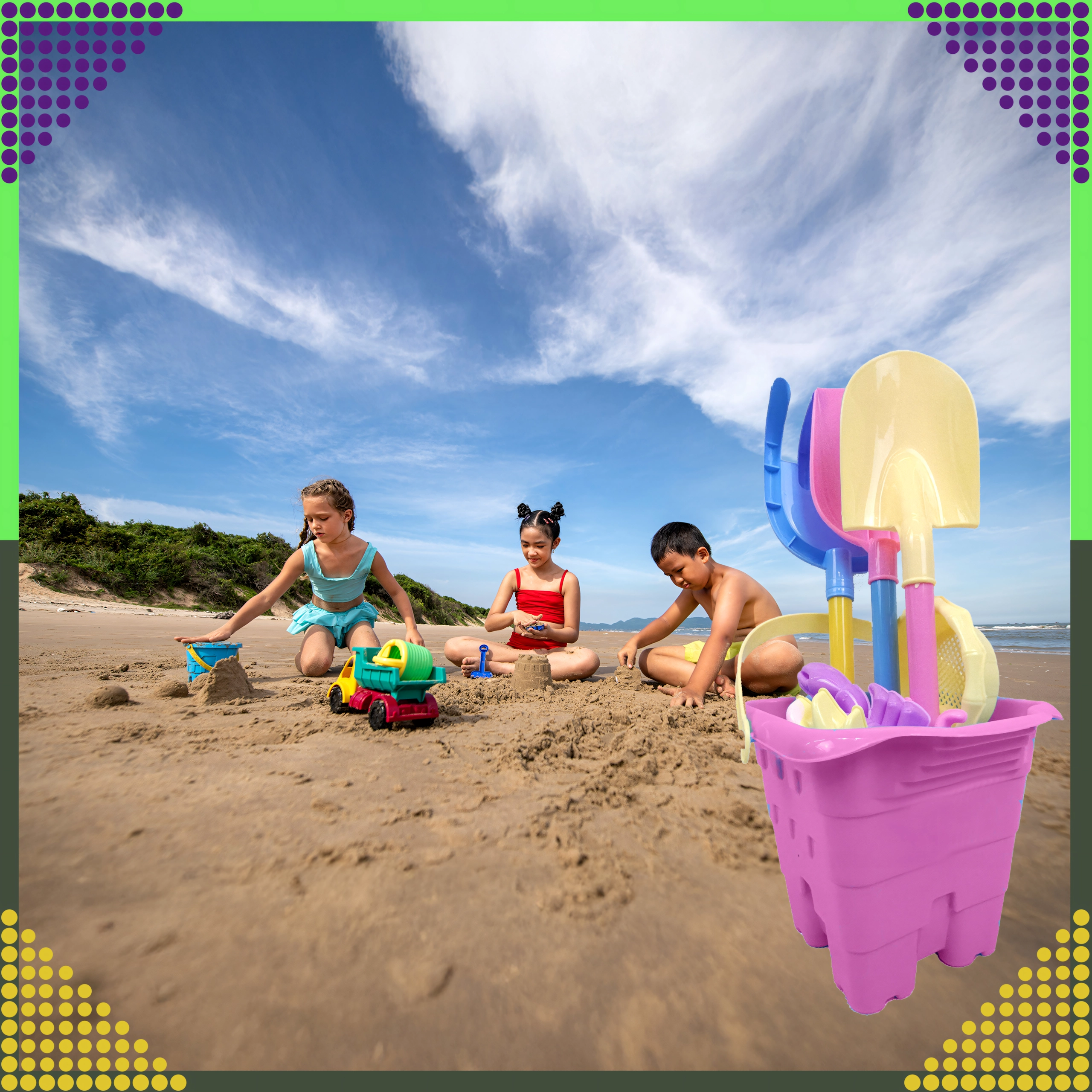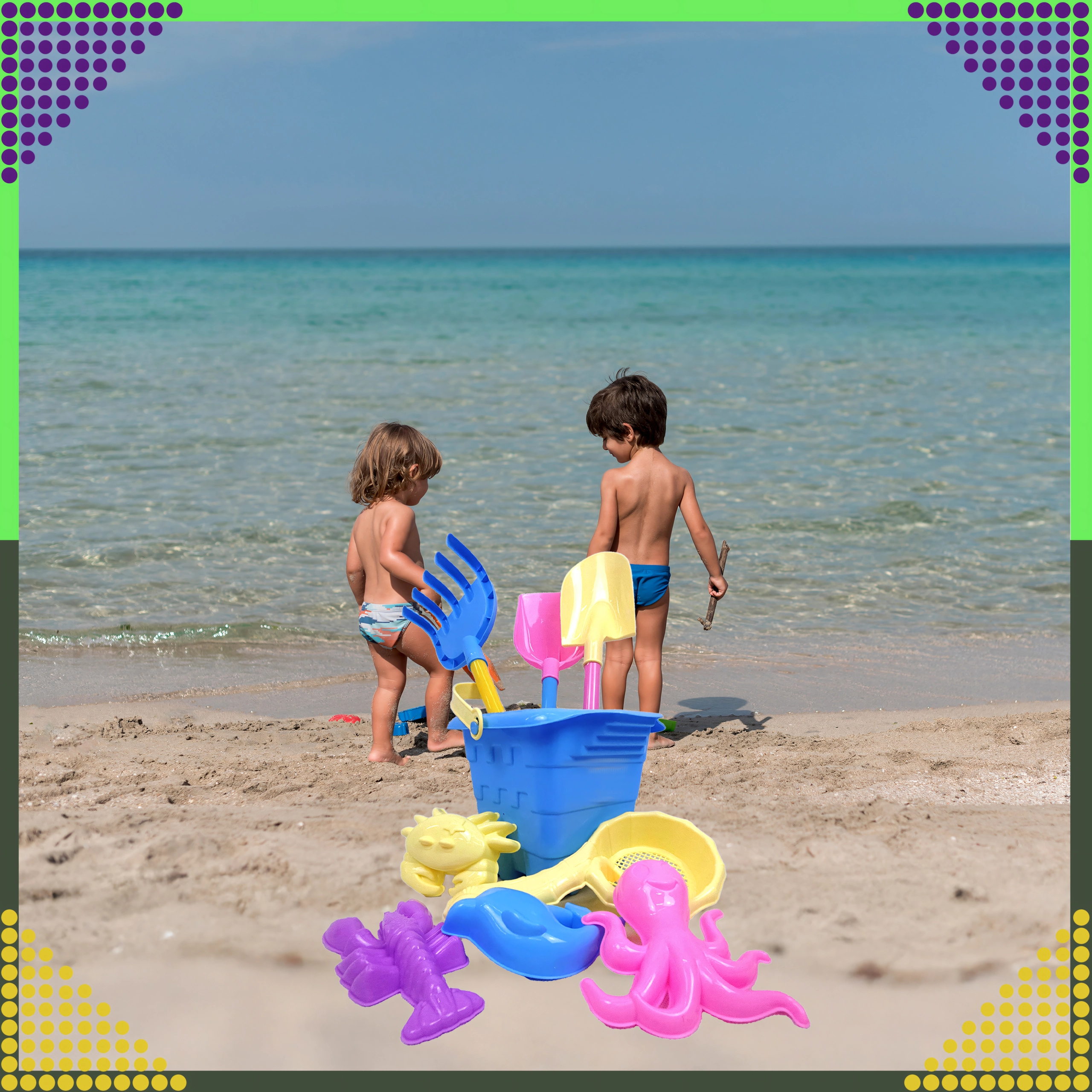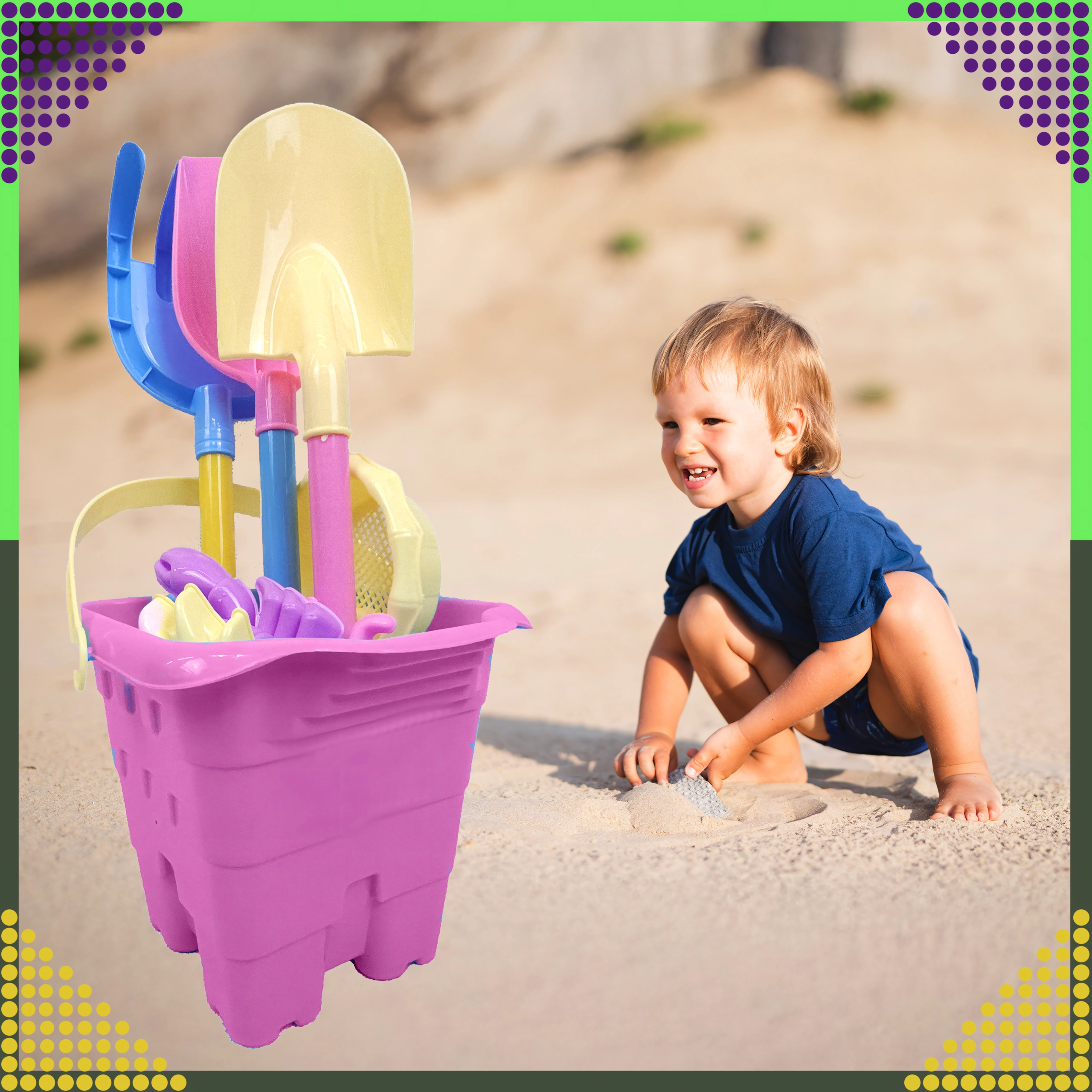 De set is perfect voor strand, tuin en bij het water. Bouw zandkastelen en prikkel elke dag de verbeelding van kinderen.